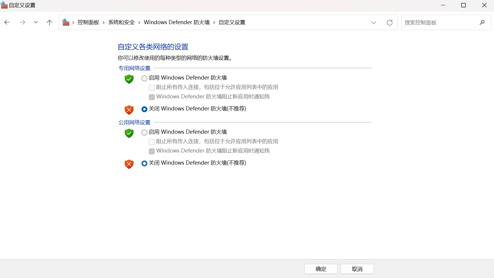- 问题1解决方案:询问同学,知道了是防火墙的问题关闭防火墙