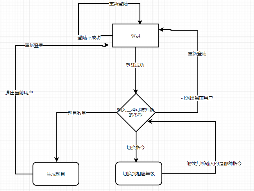 个人项目需求中要求”登陆后系统提示‘准备生成XX数学题目,请输入生成题目数量(输入-1将退出当前用户,重新登录):’”,