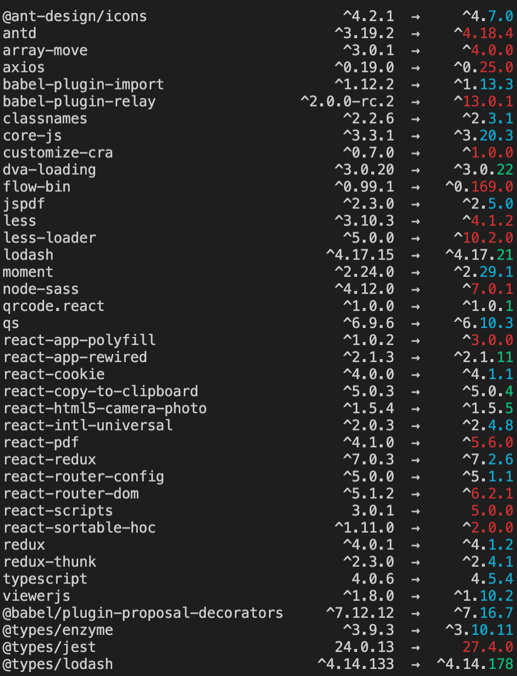 a、前端技术更新比较快,需要不断更新保持技术和依赖都和社区同步。当前项目基于CRA于2919年年中开发的脚手架搭建,插件和工具类版本已经过时,大部分外部依赖库都有很大升级而且我们无法控制,如果不升级,一年后项目会没法启动本地开发环境,也没法打包部署上线;
