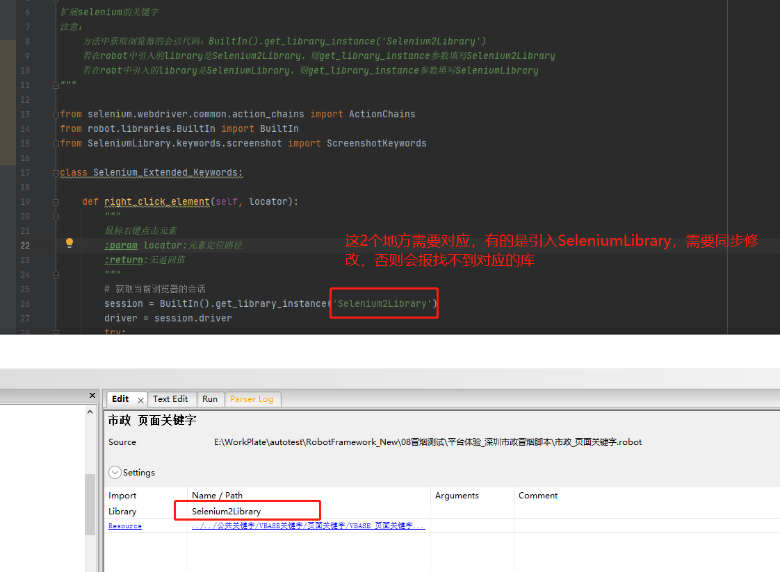 若在robot中引入的library是Selenium2Library,则get_library_instance参数填写Selenium2Library