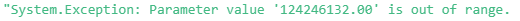 在更新decimal类型字段时,提示 decimal 字段的值超出了范围。