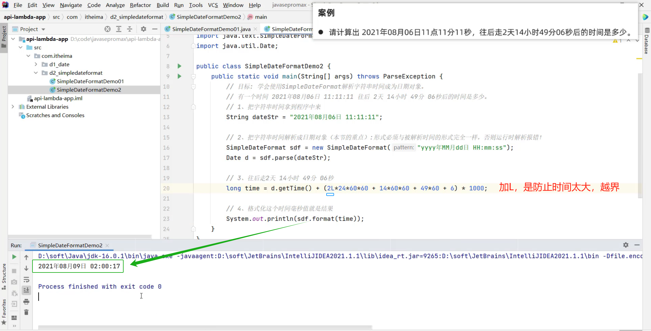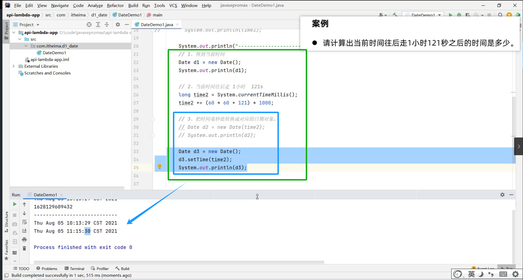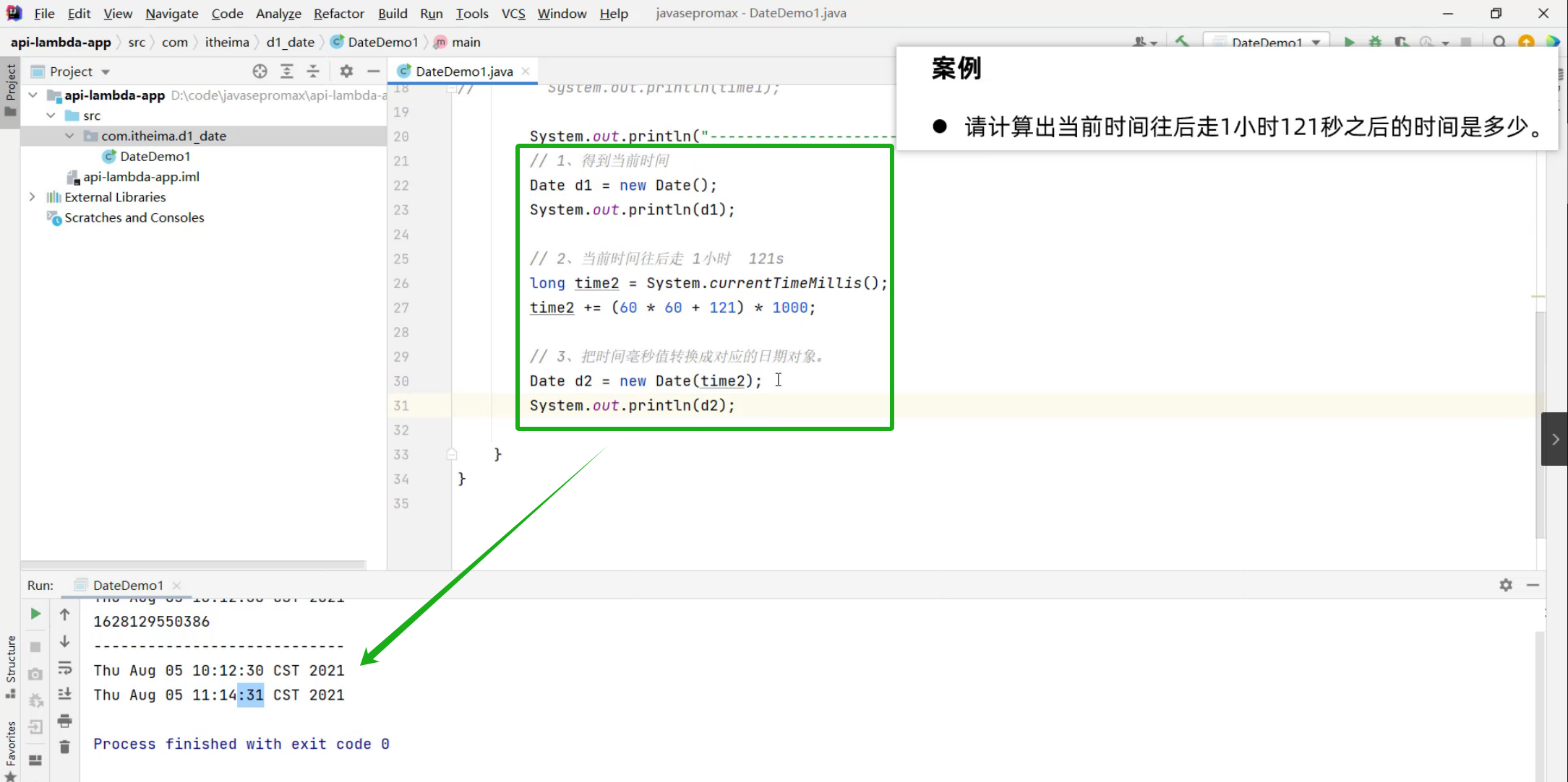 【案例】:计算出当前时间往后走1小时121秒之后的时间是多少。