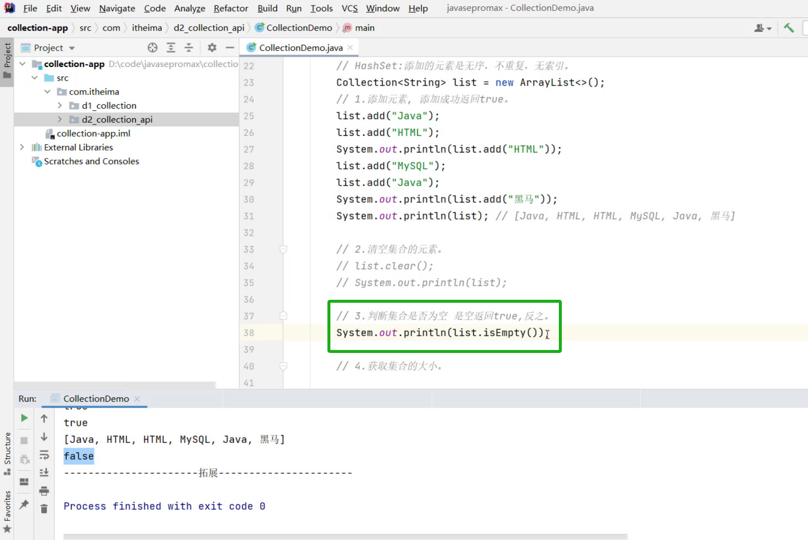 3.判断集合是否为空,是空返回true,反之为false