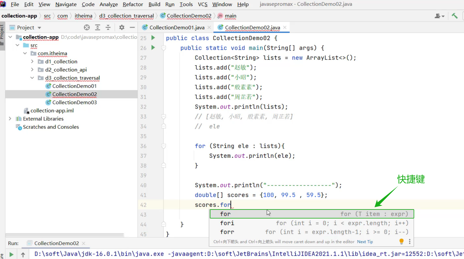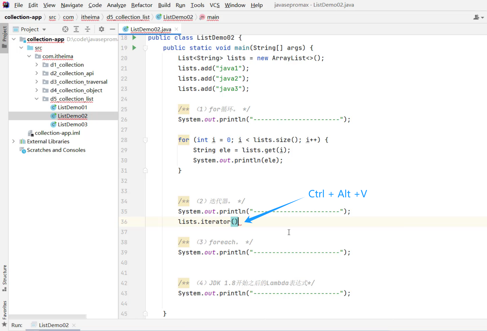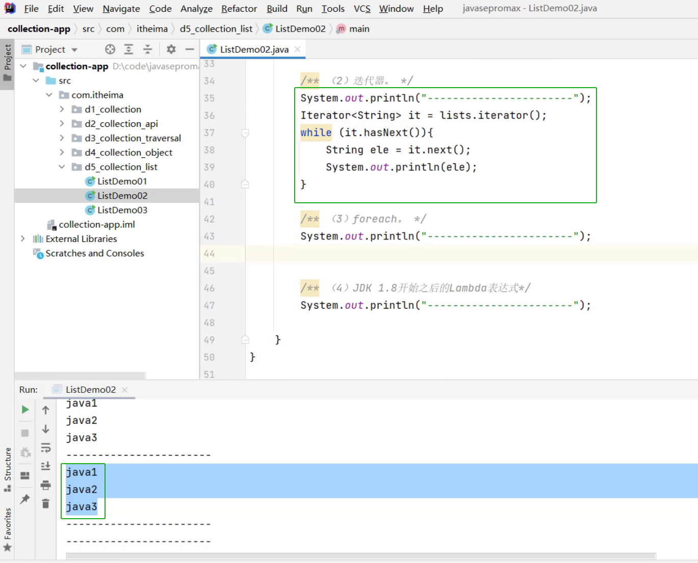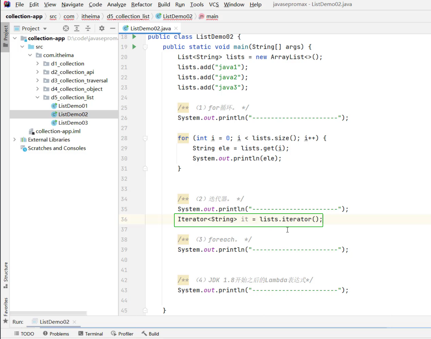 ②、List集合的遍历方式 -- 迭代器