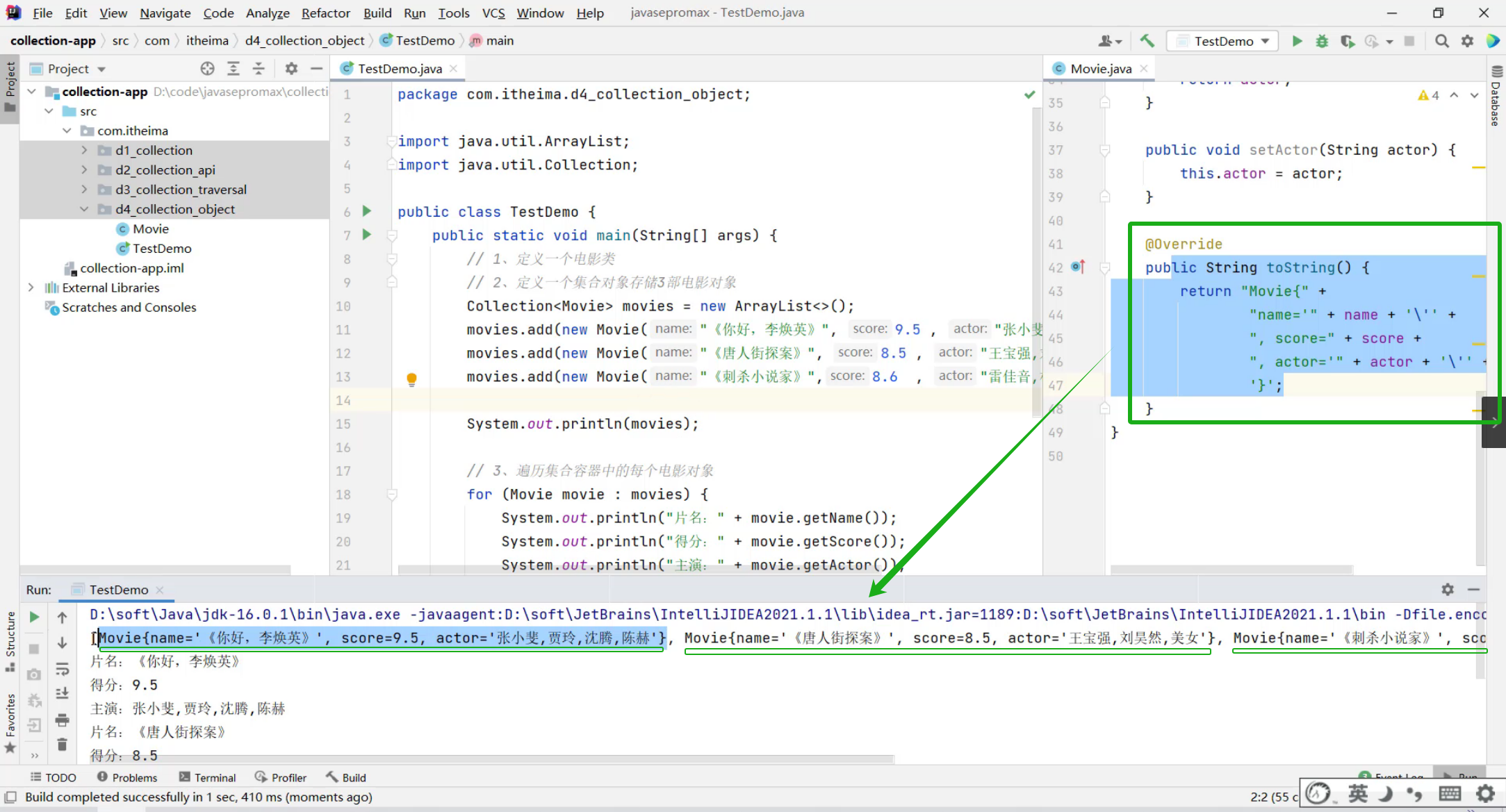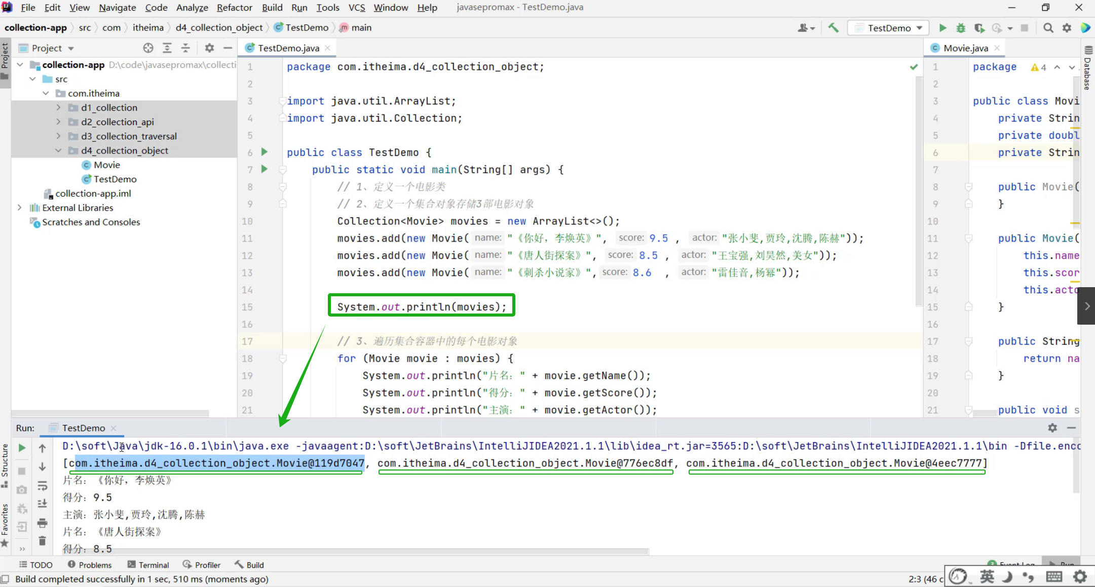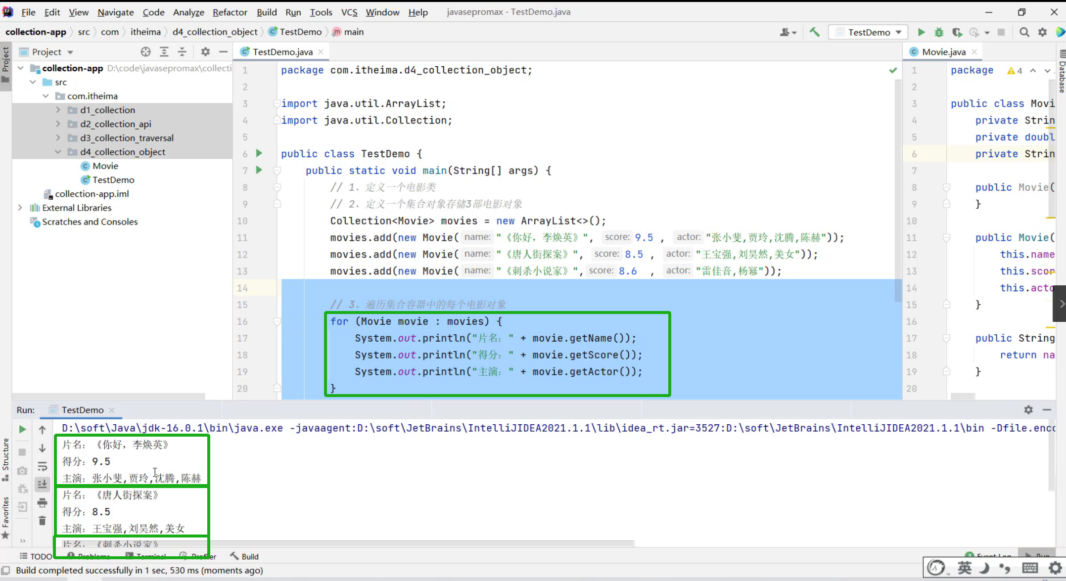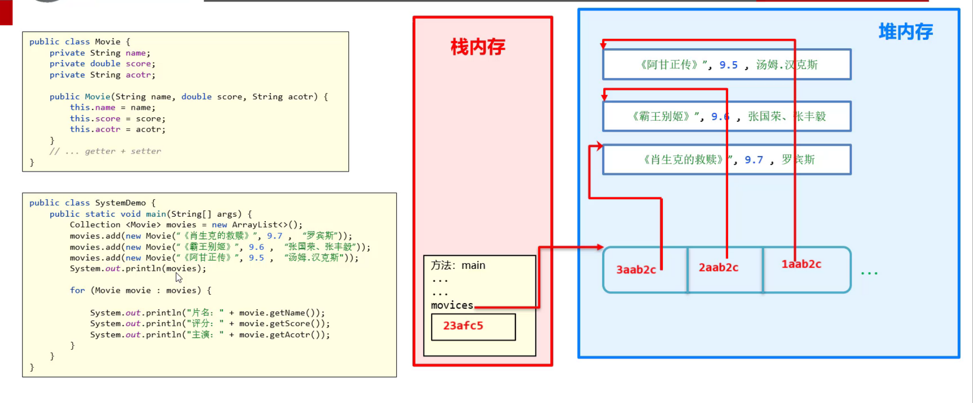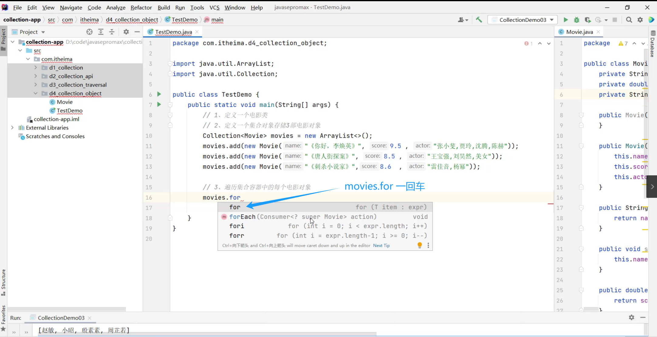 ②、创建3个电影对象,封装相关数据,把3个对象存入到集合中去