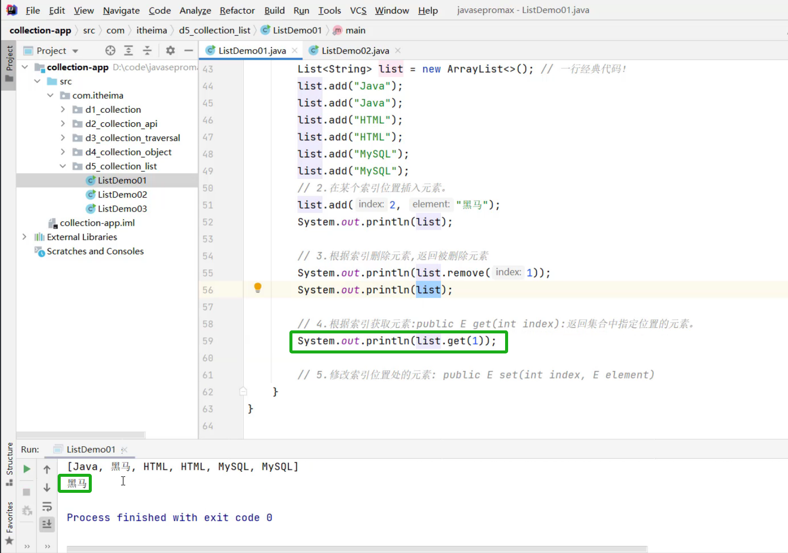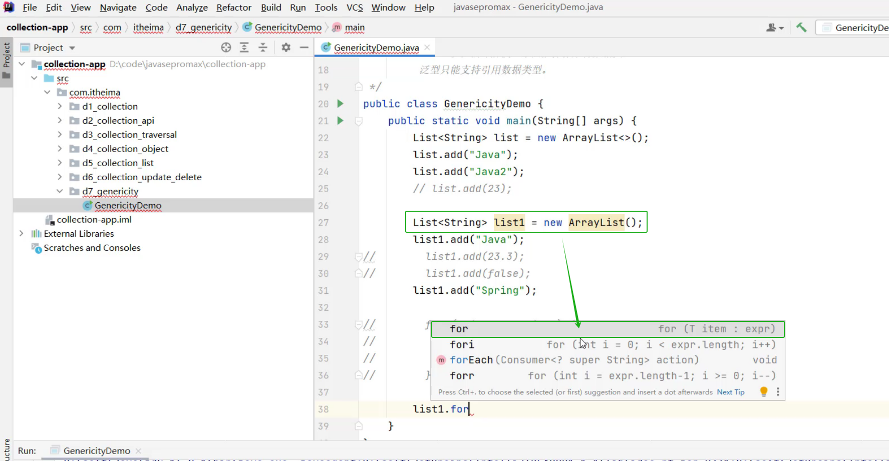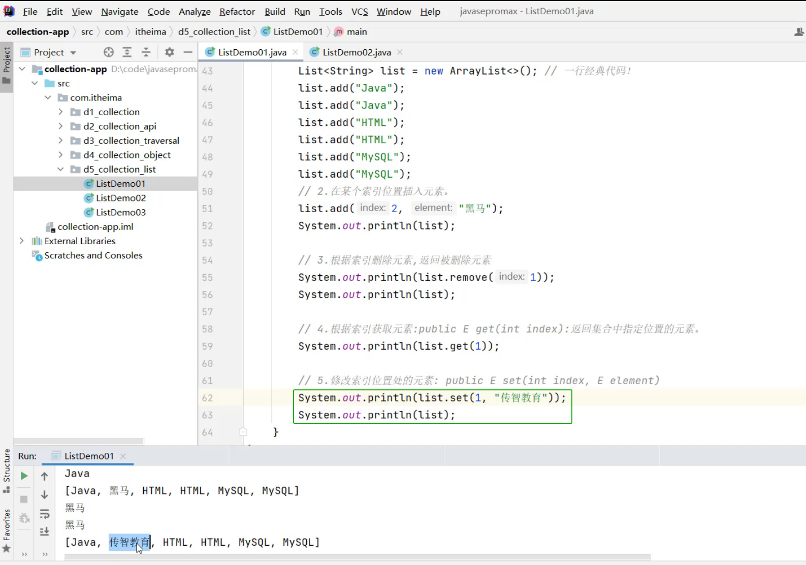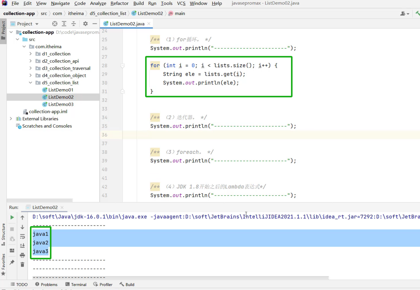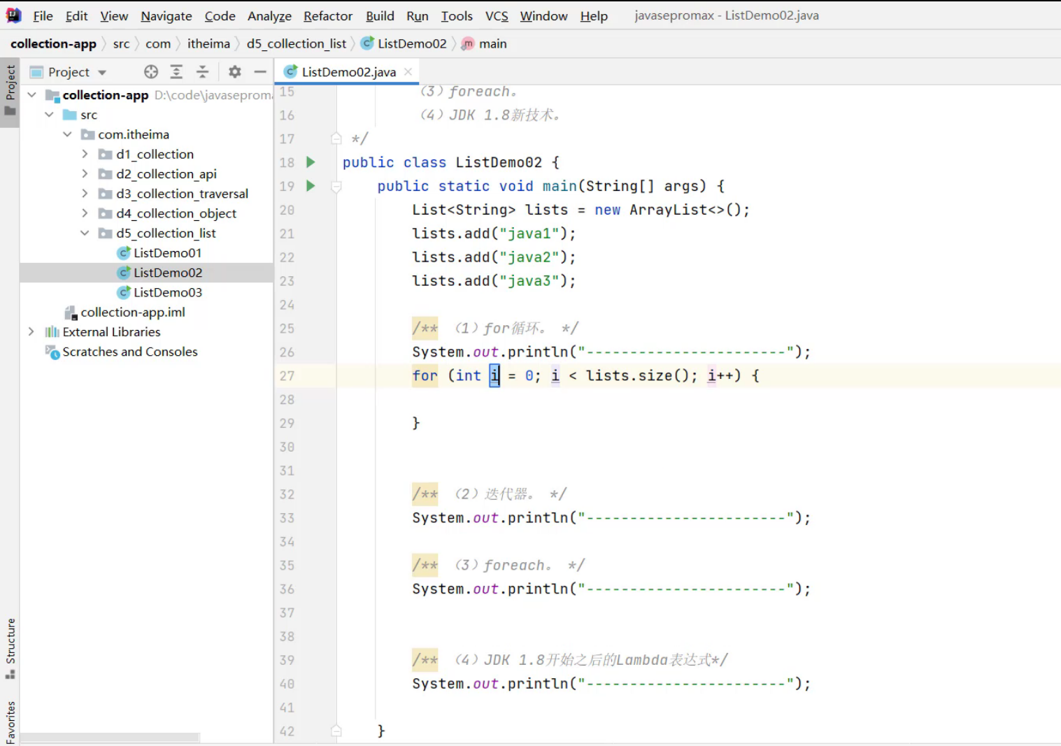 ①、List集合的遍历方式 -- for循环