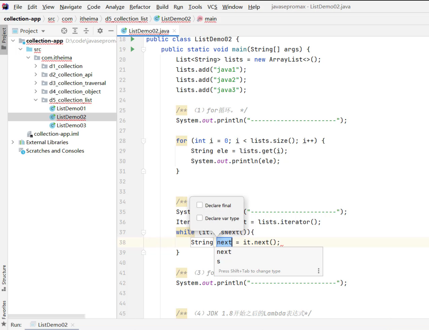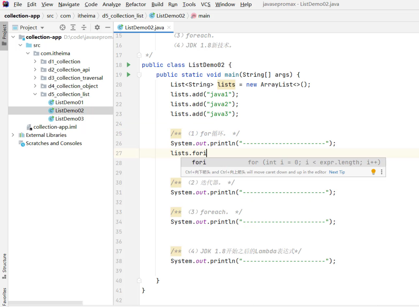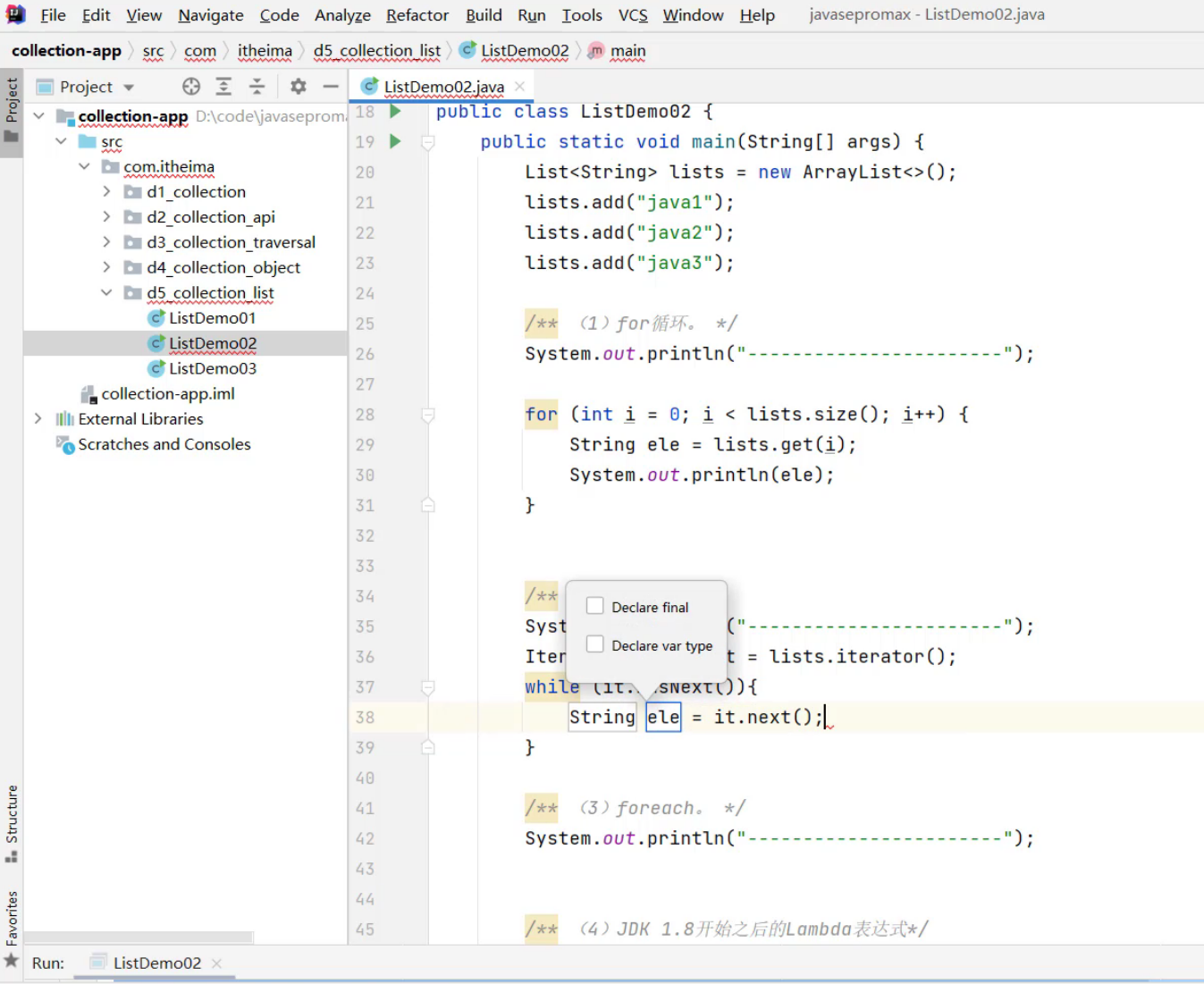 ③、List集合的遍历方式 -- foreach