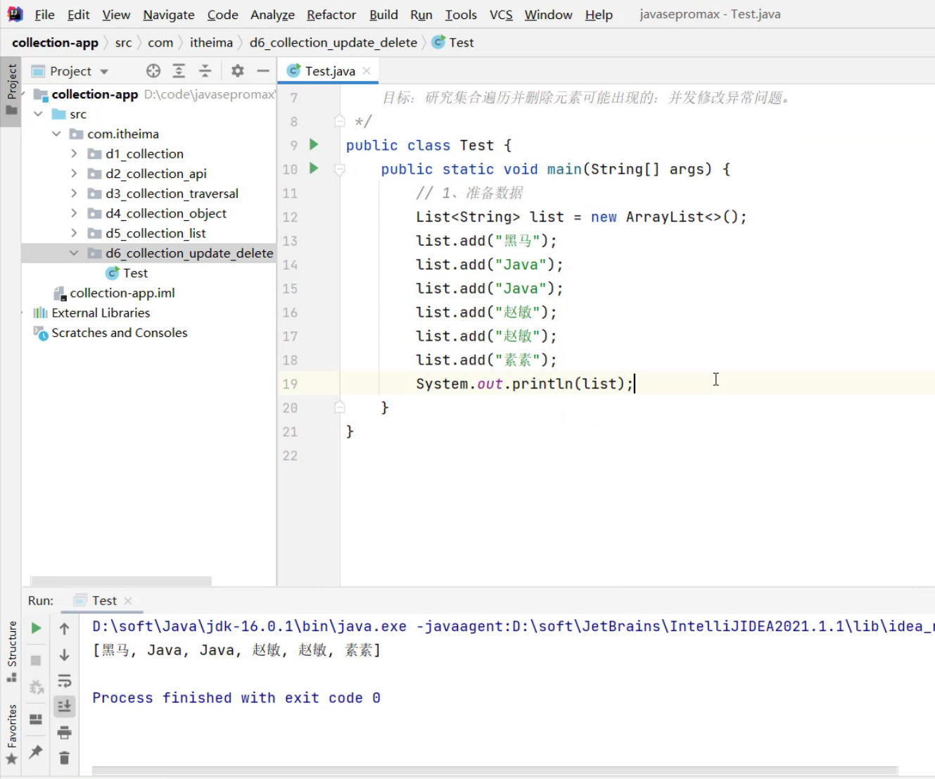 集合元素准备数据: