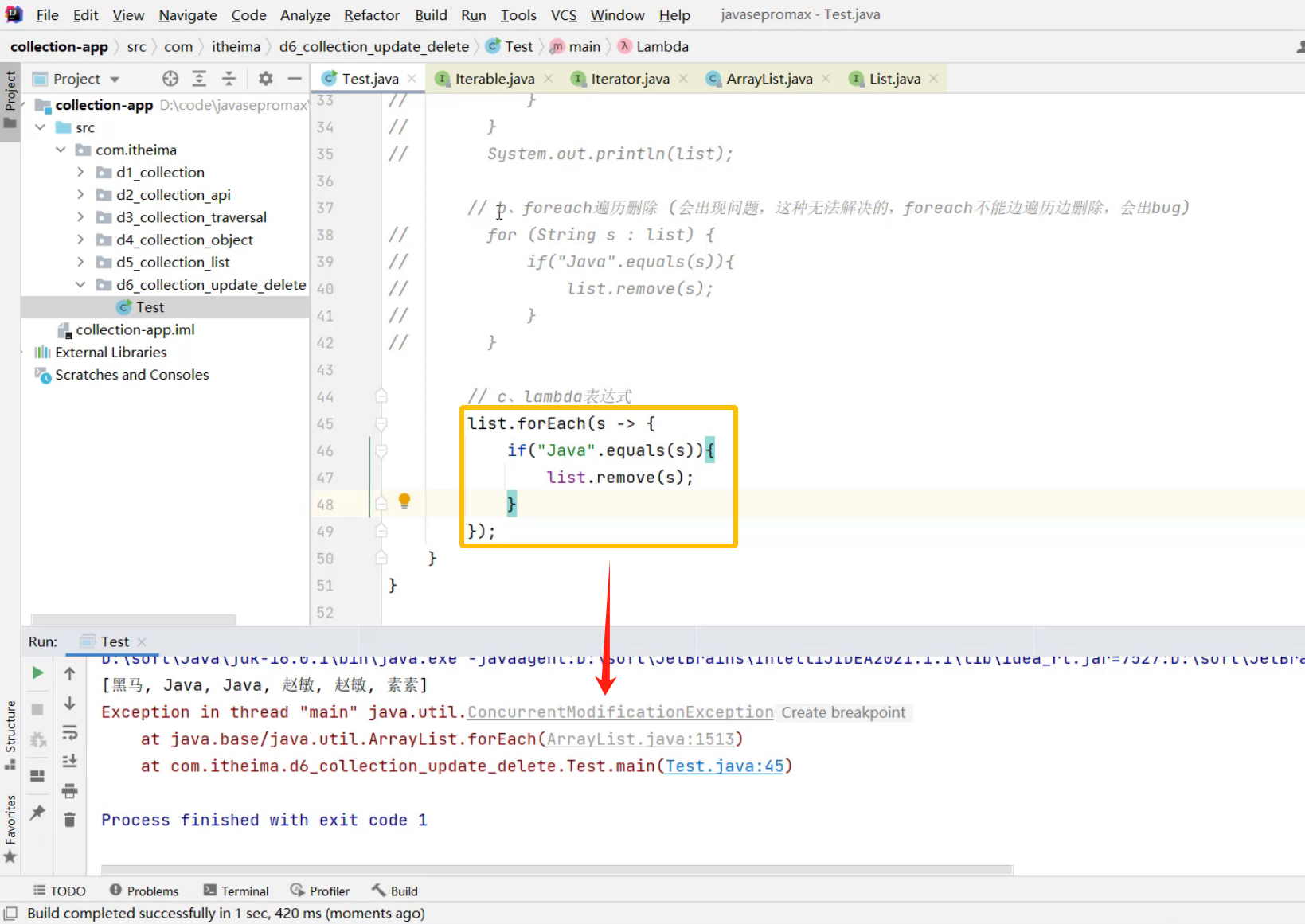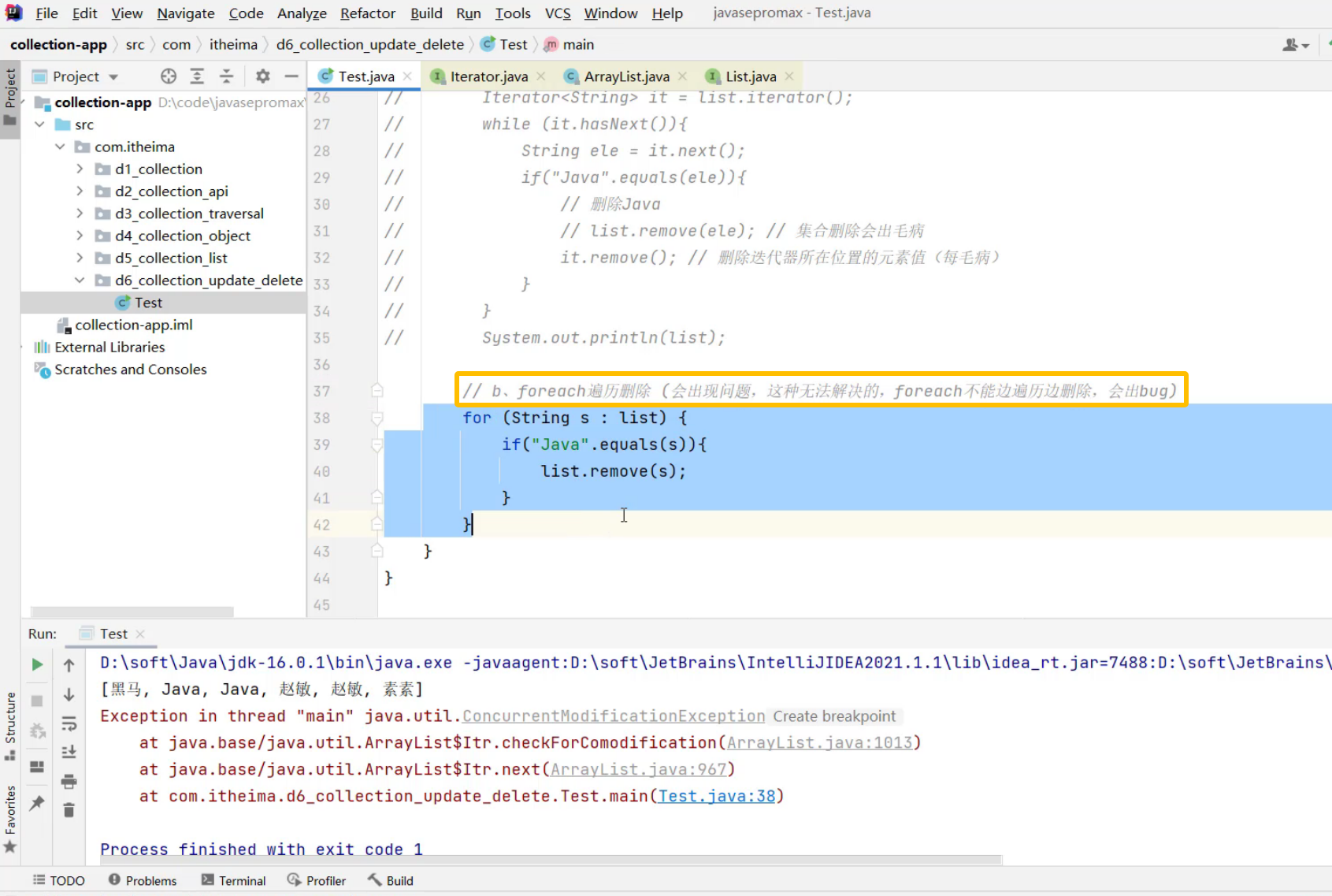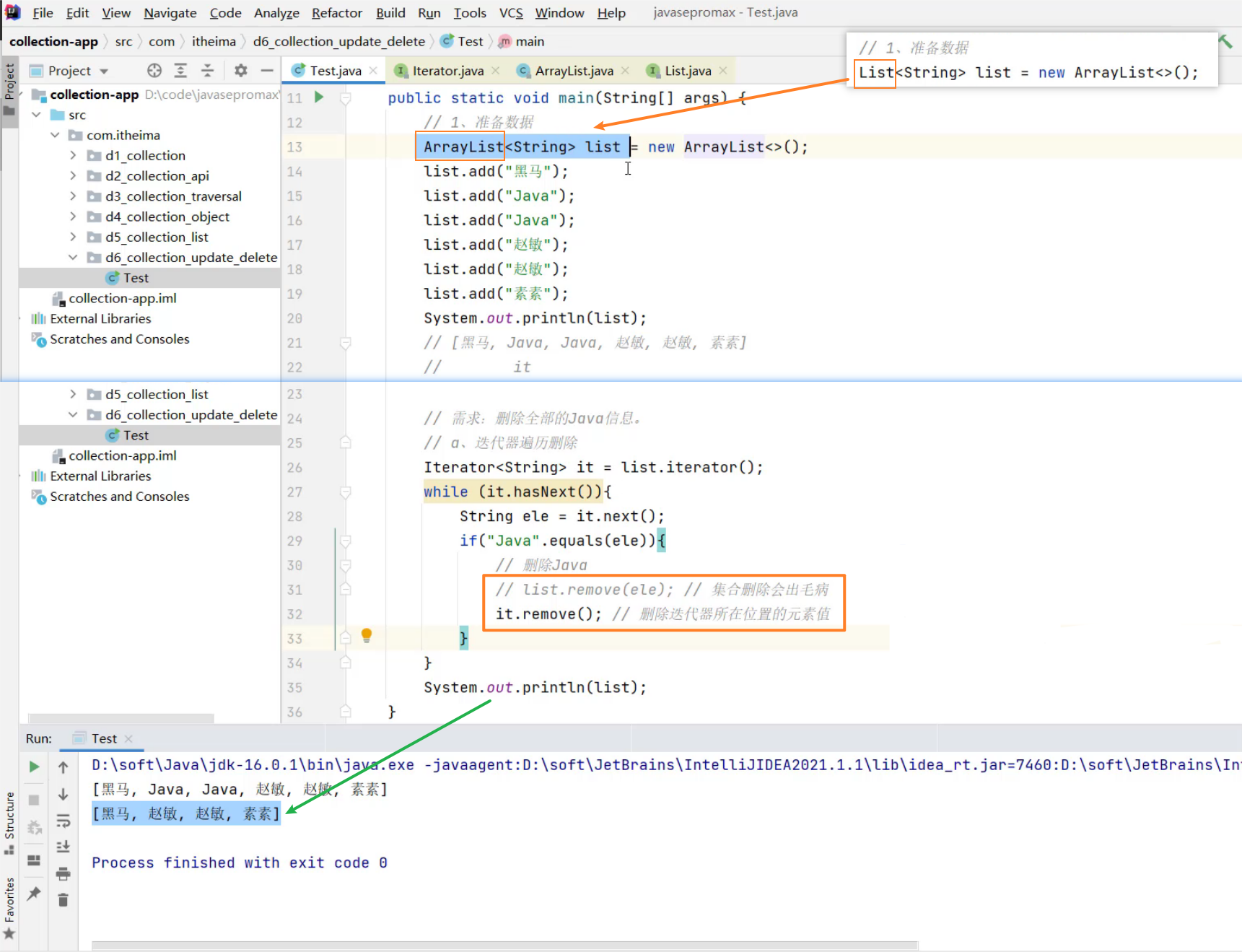 a.迭代器-遍历删除 (用ArrayList,遍历删除,不会报错)