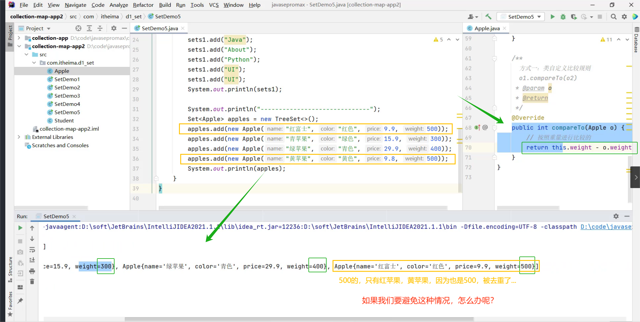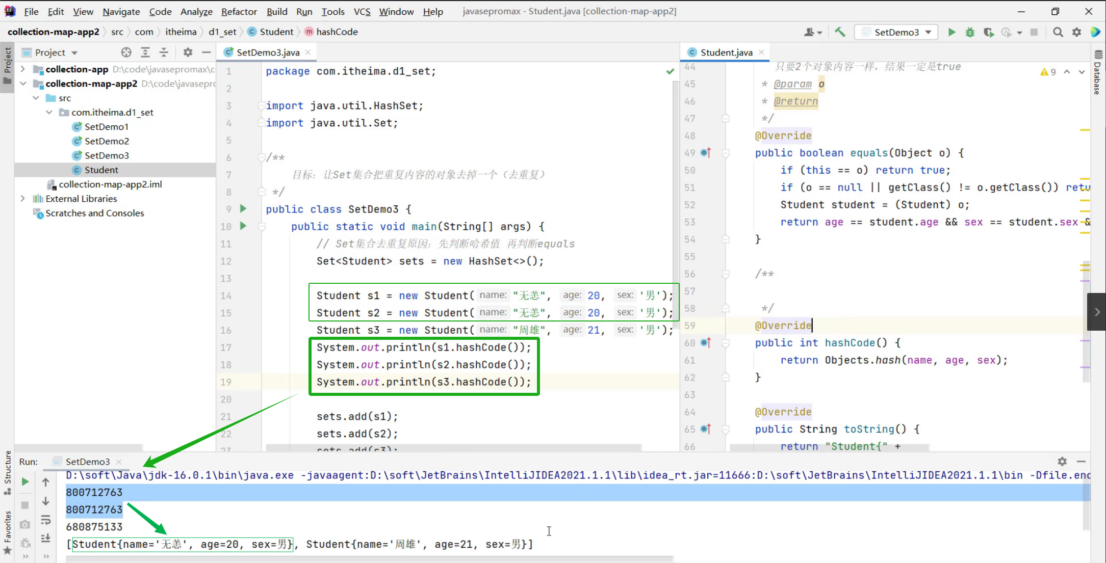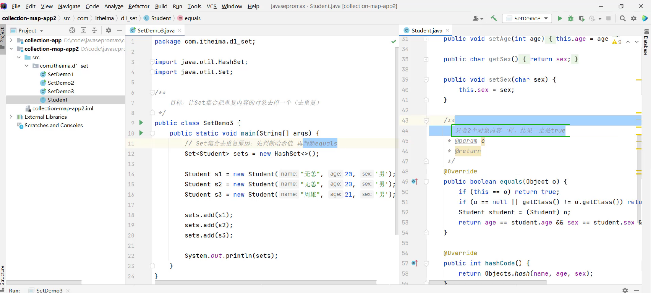 Set集合去重复的原因,先判断哈希值,再判断equals