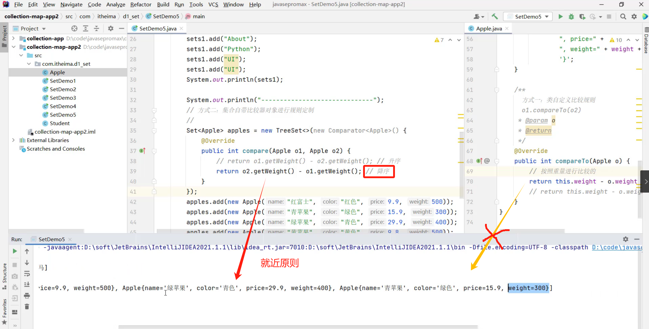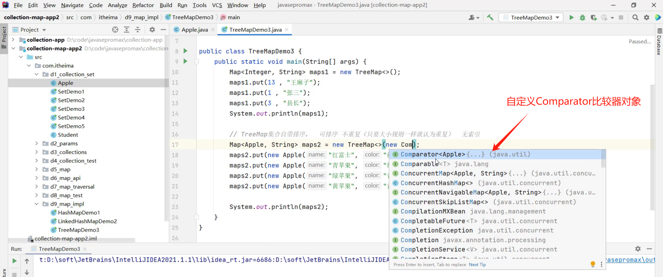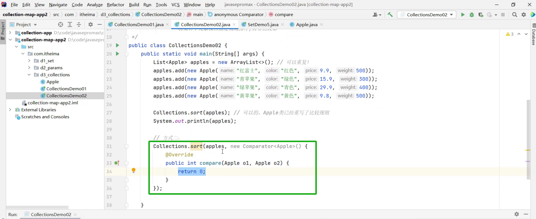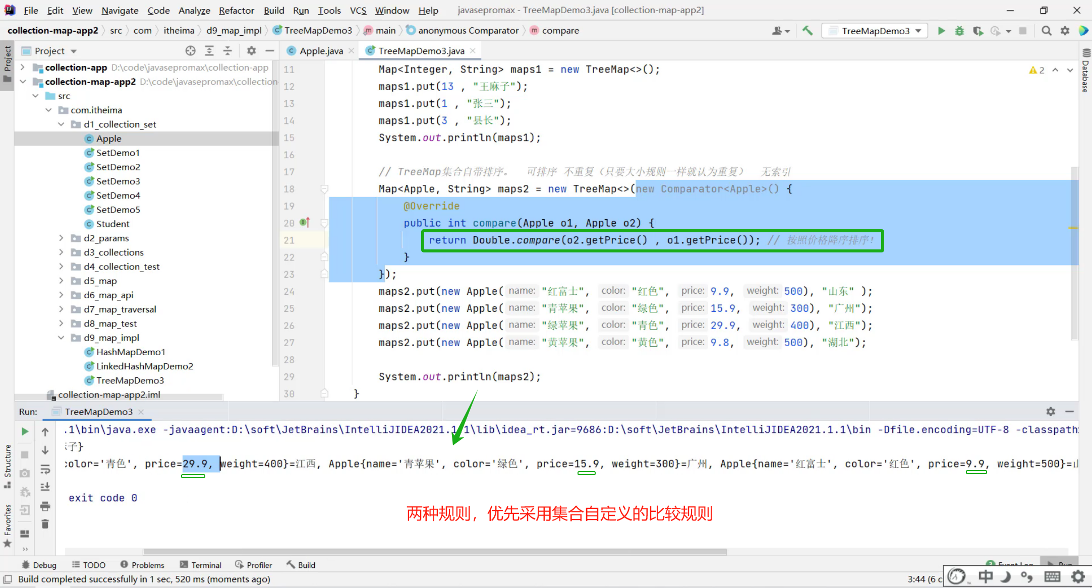 规则2:TreeMap集合自定义Comparator比较器对象,重写比较规则。