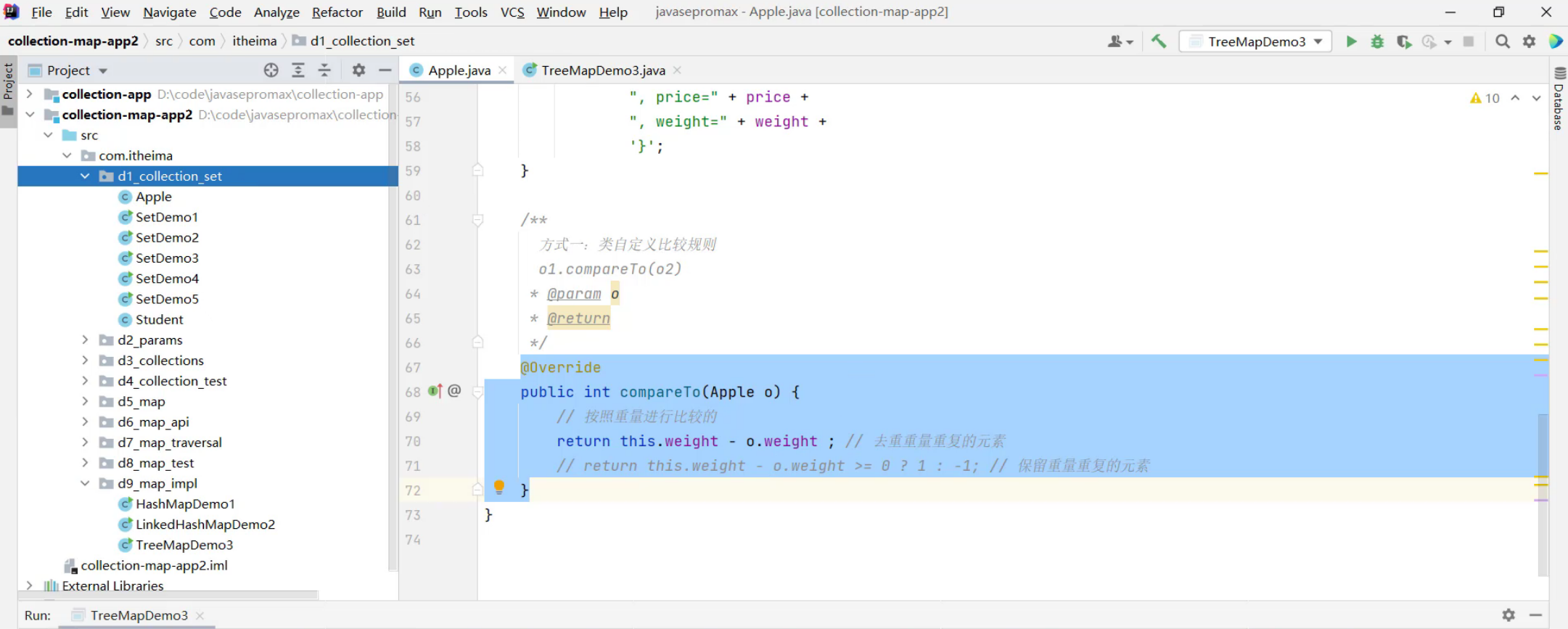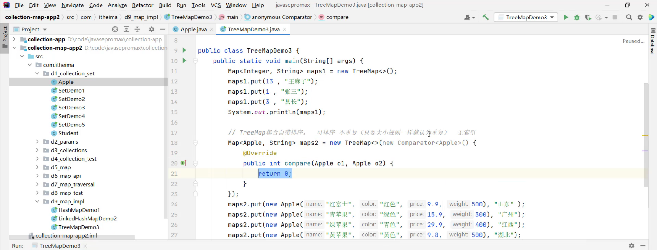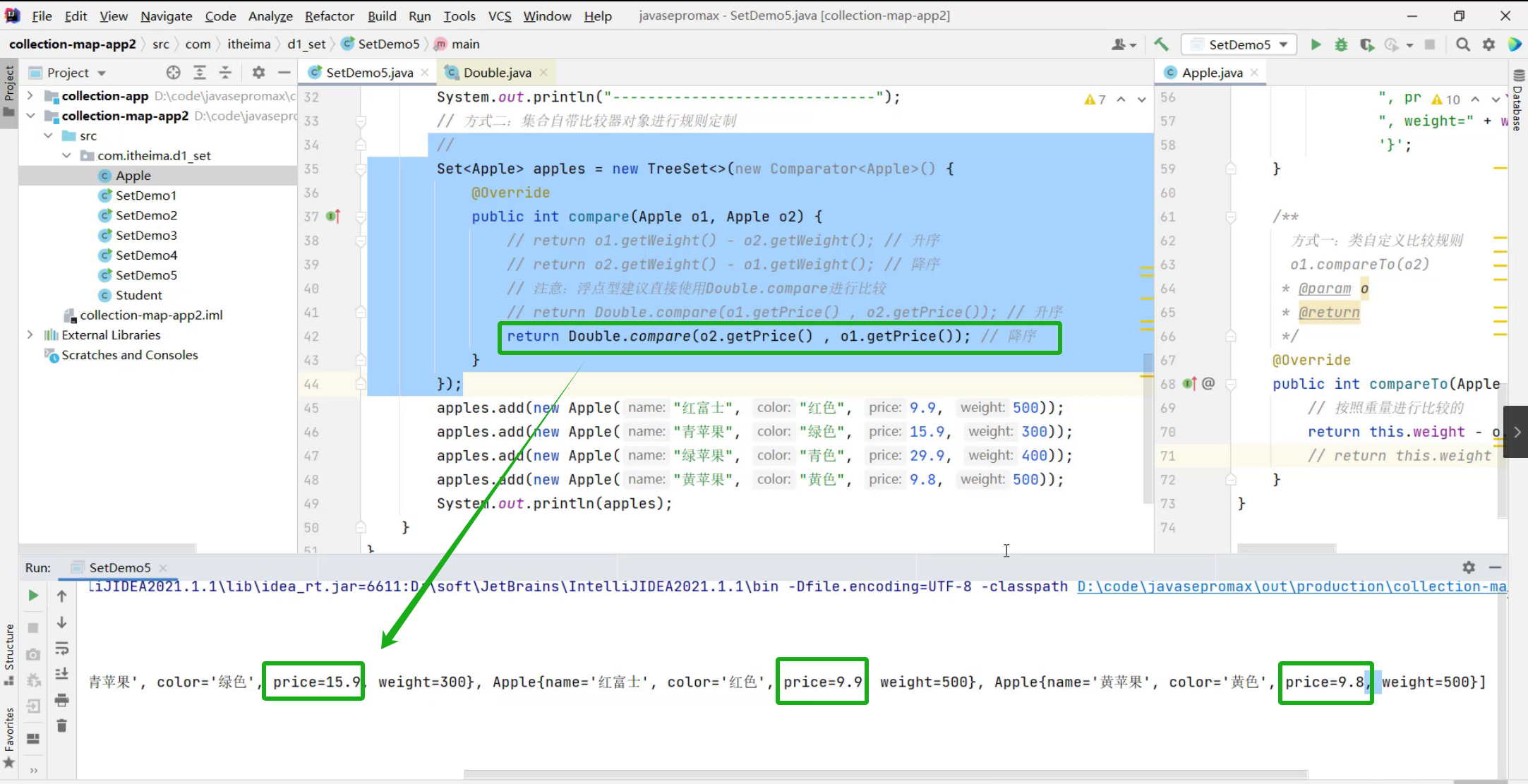规则2:TreeMap集合自定义Comparator比较器对象,重写比较规则。
