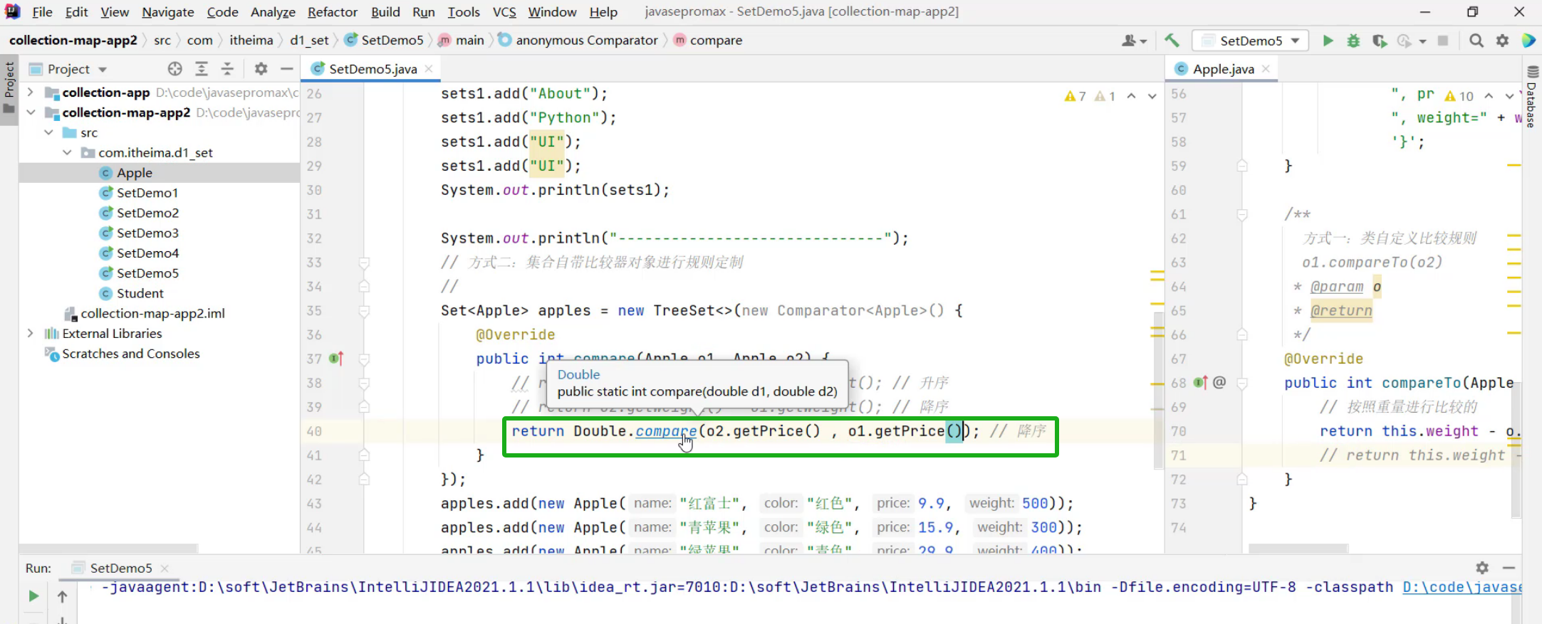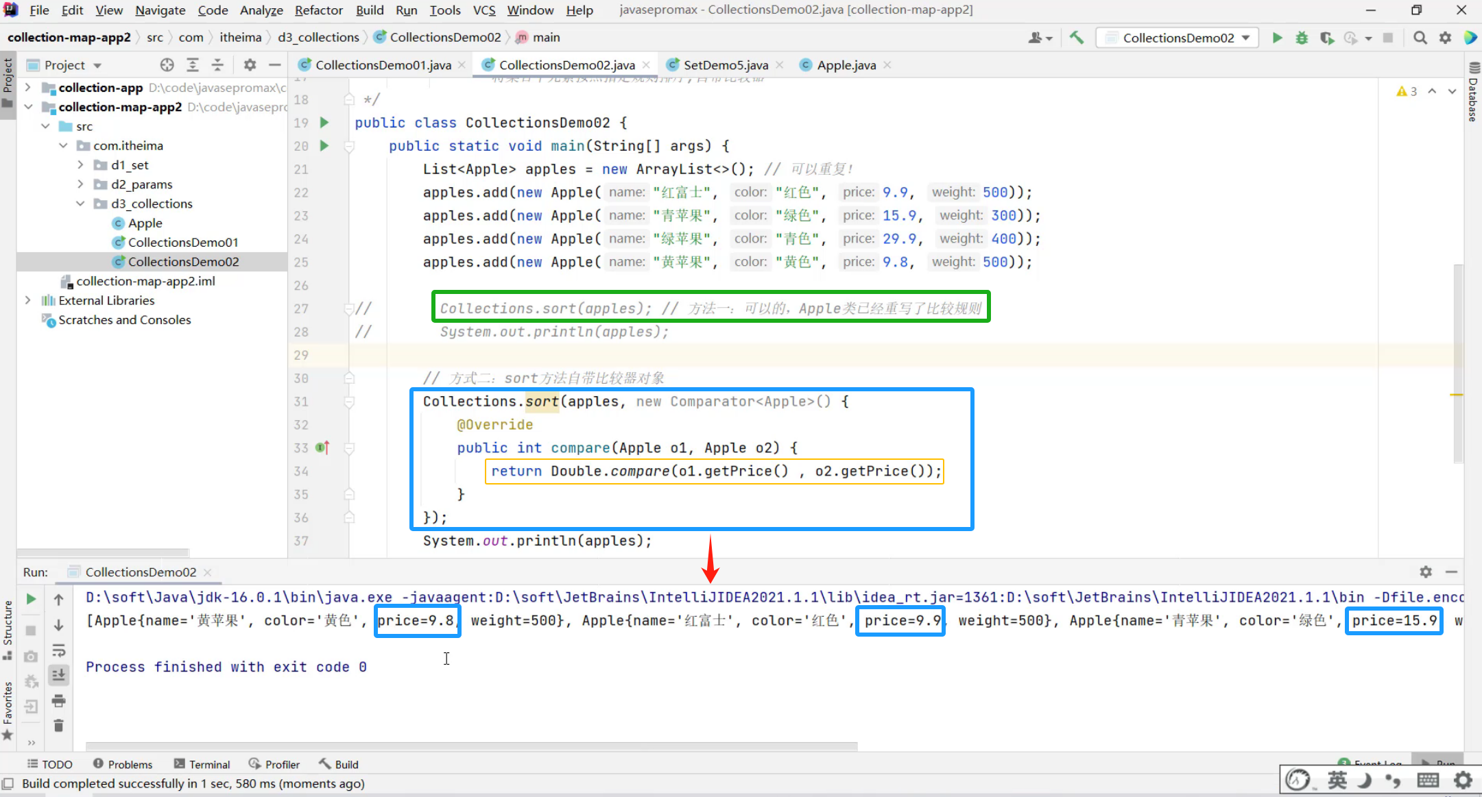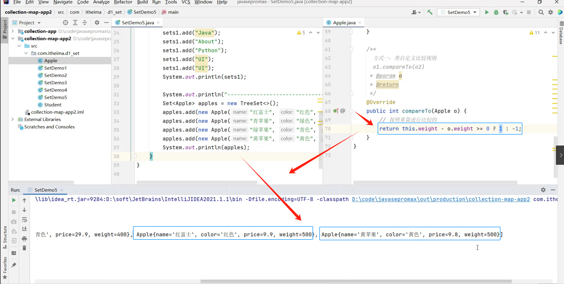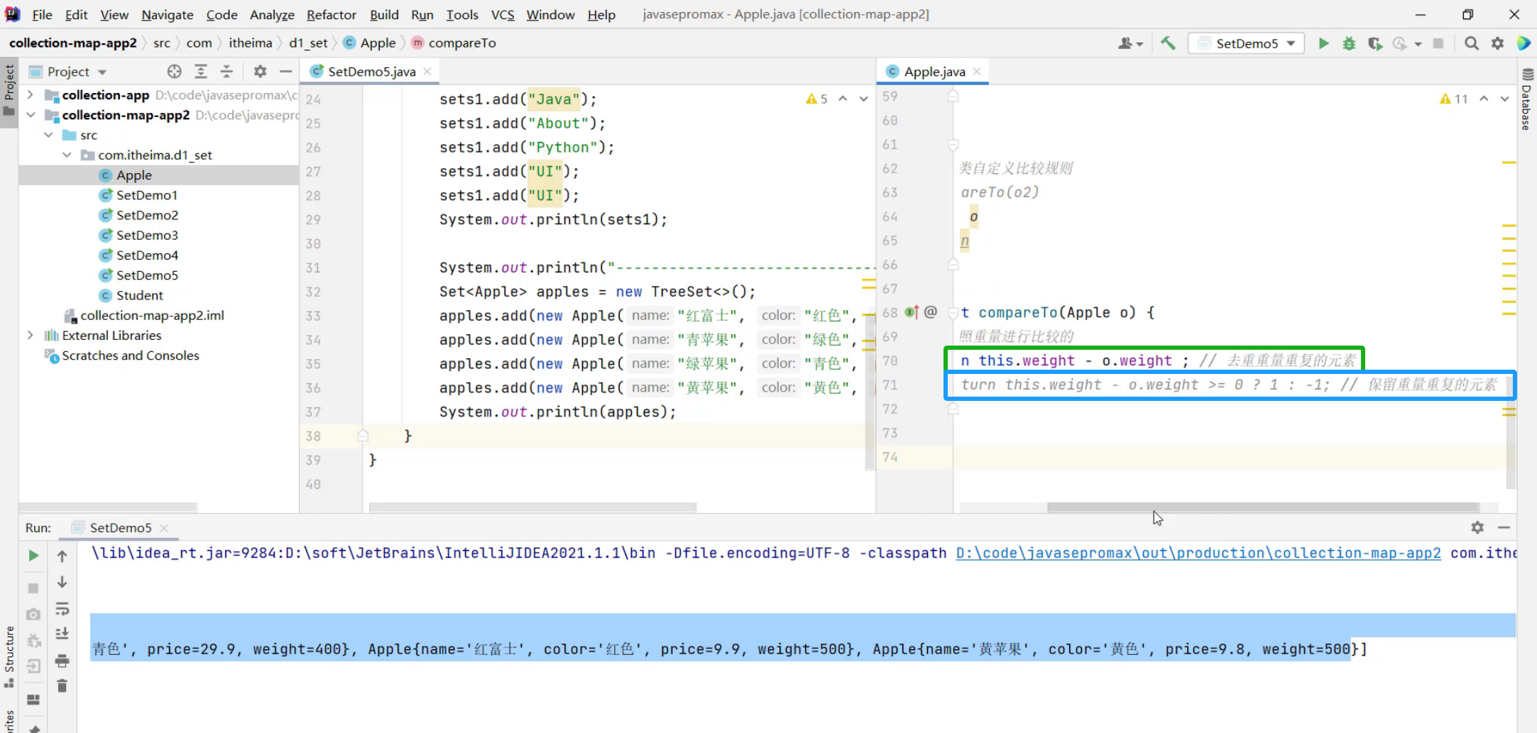规则2:TreeMap集合自定义Comparator比较器对象,重写比较规则。