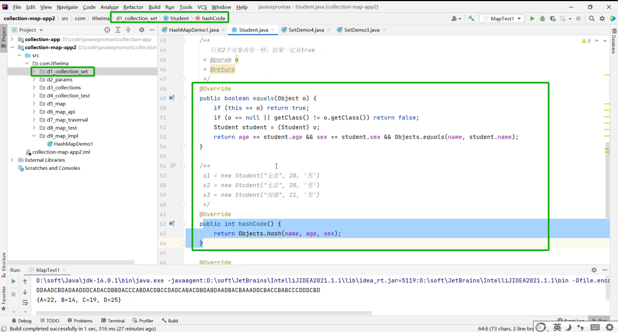 HashCode()方法:只要传入值是一样的,结果一定是true。