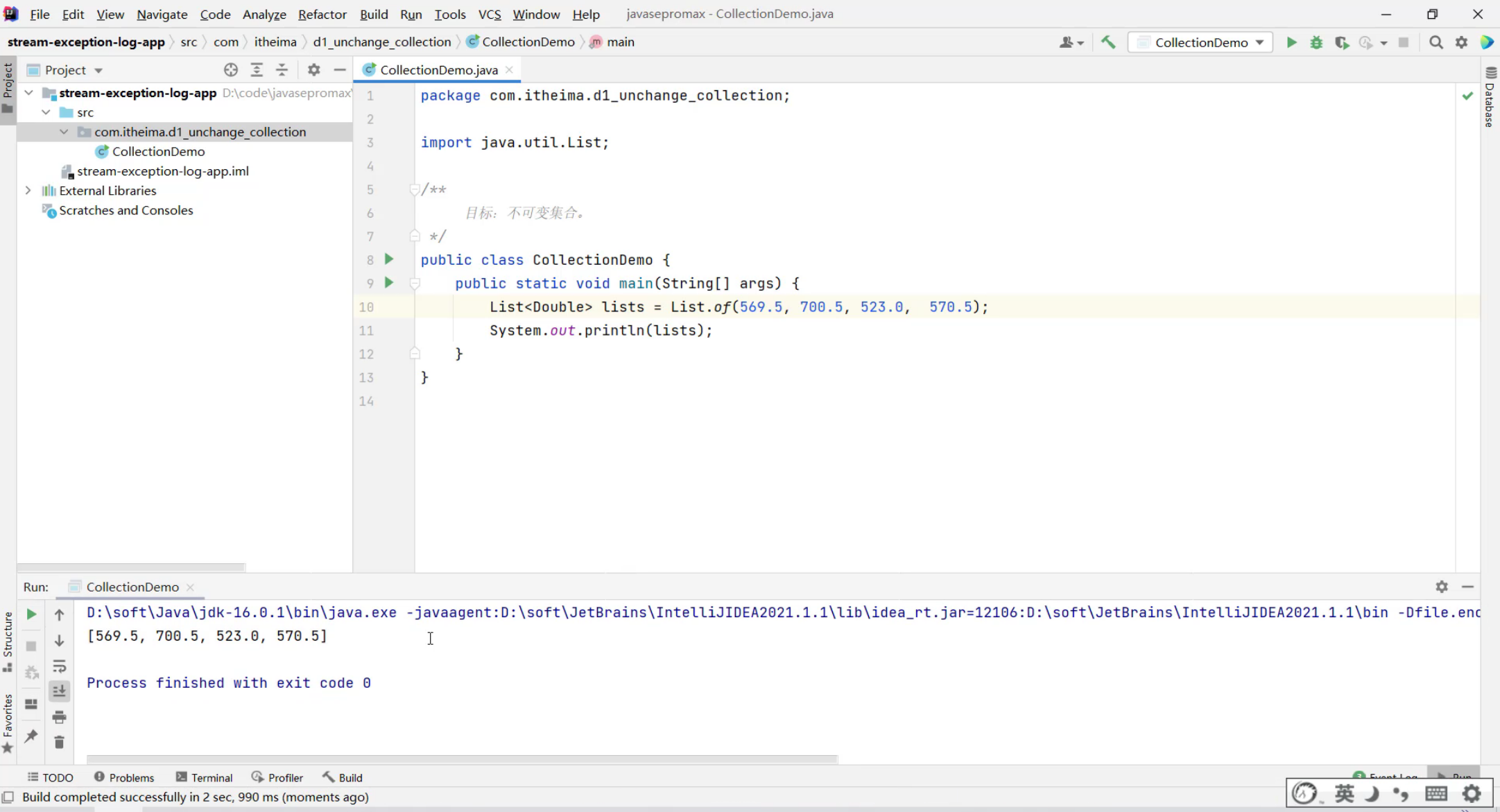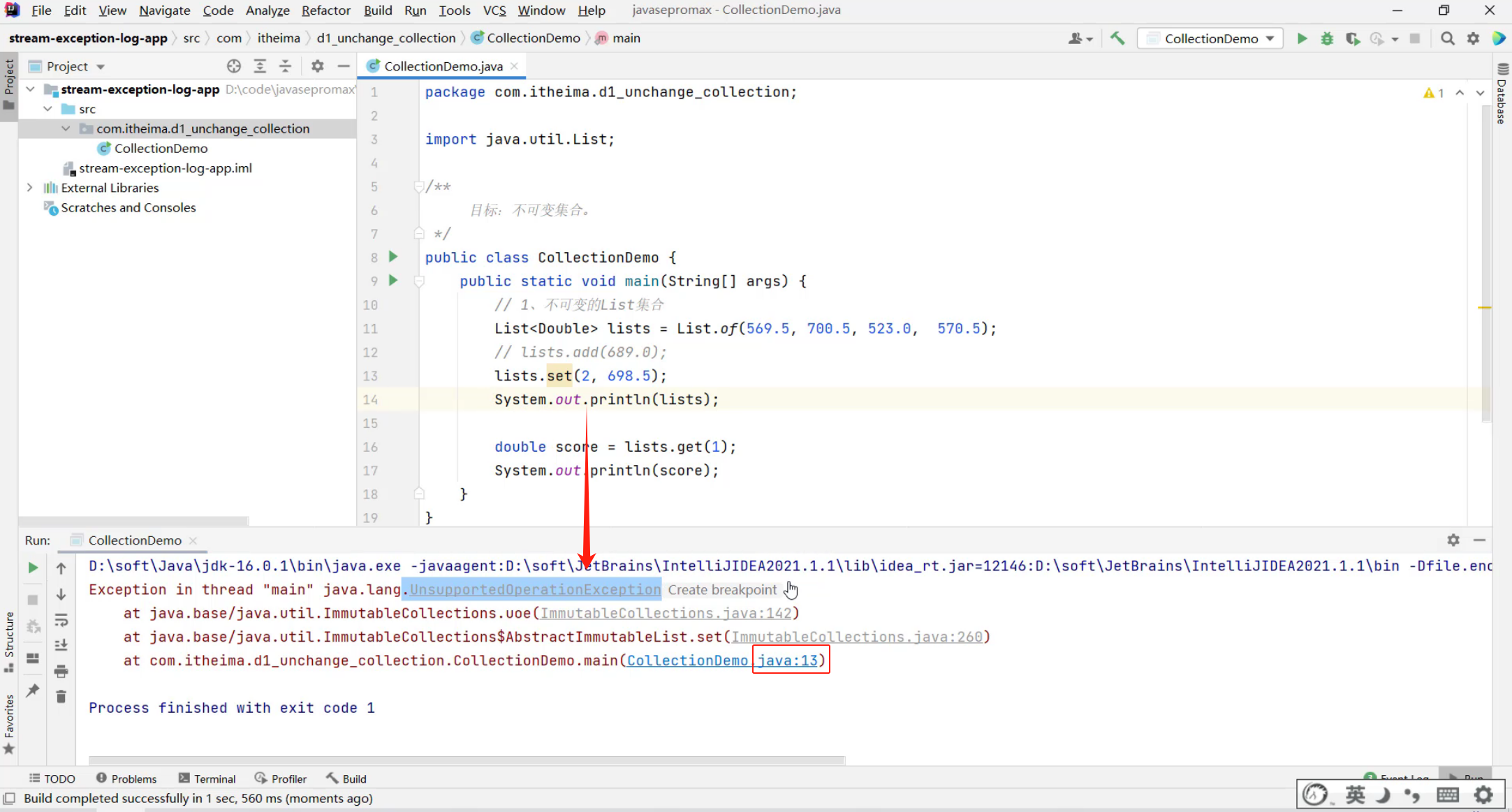 ①:不可变list集合