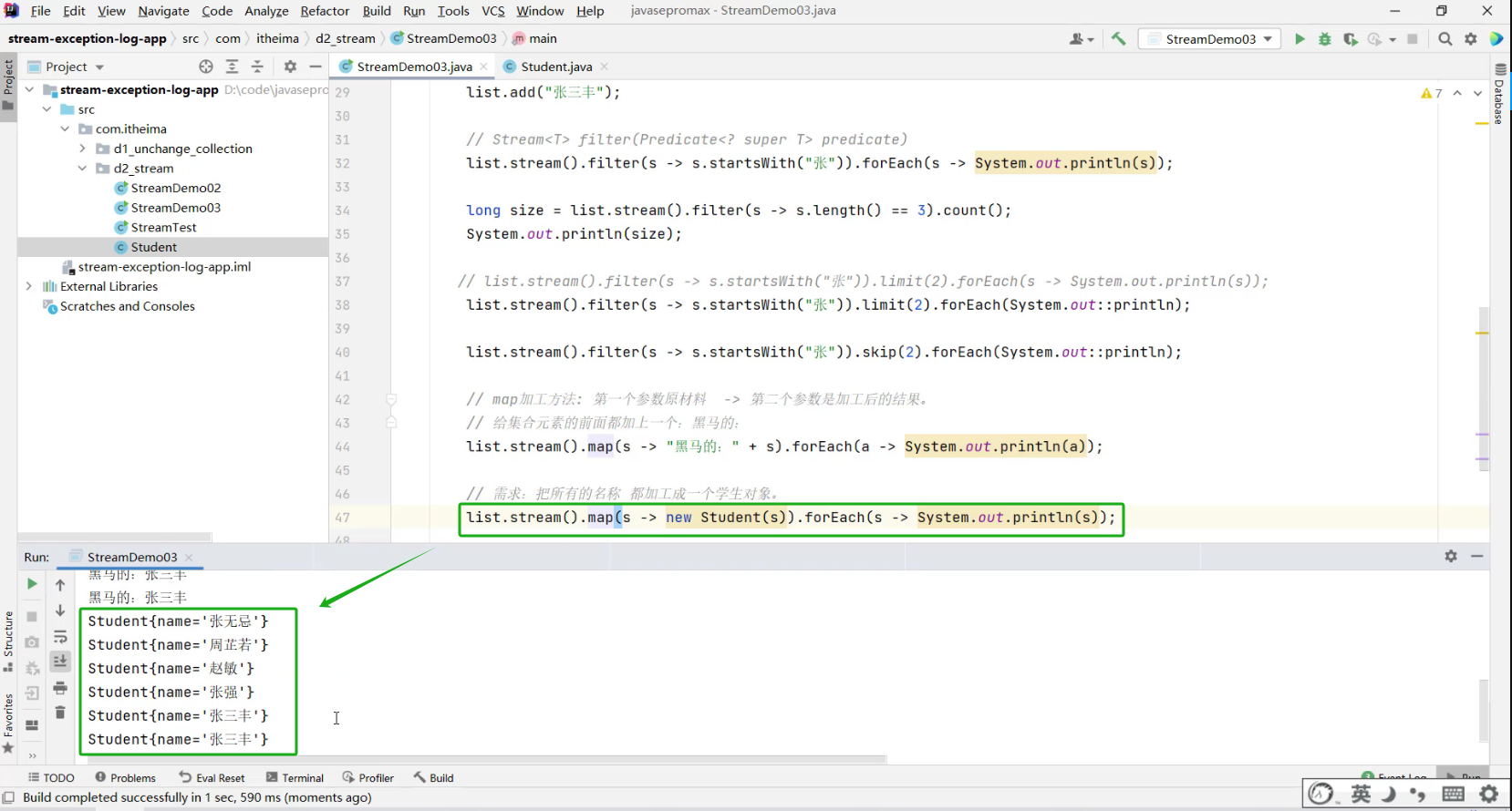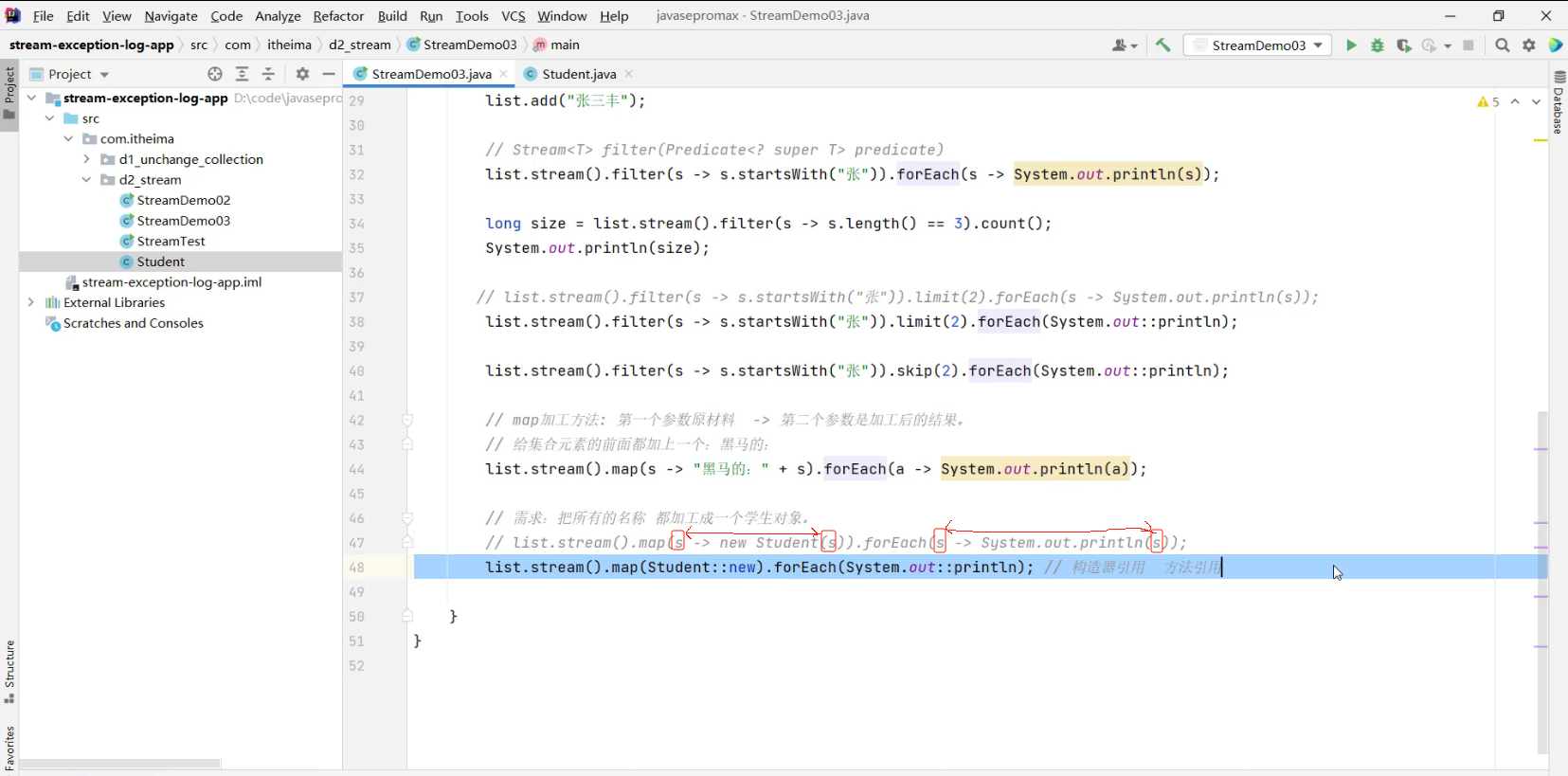 需求:把所有名称,都加工成一个学生对象
