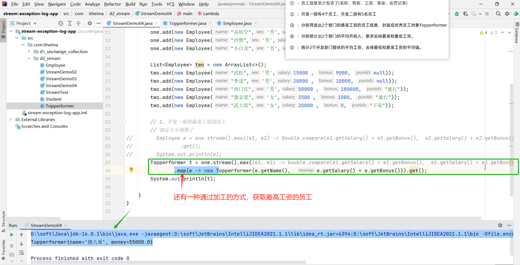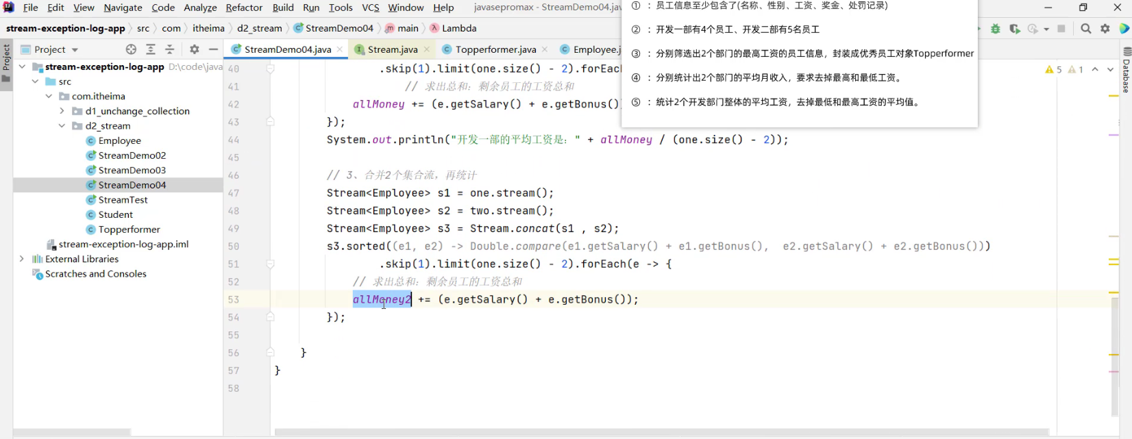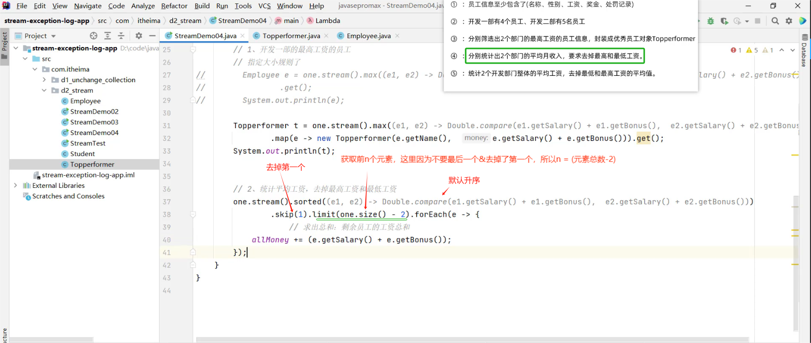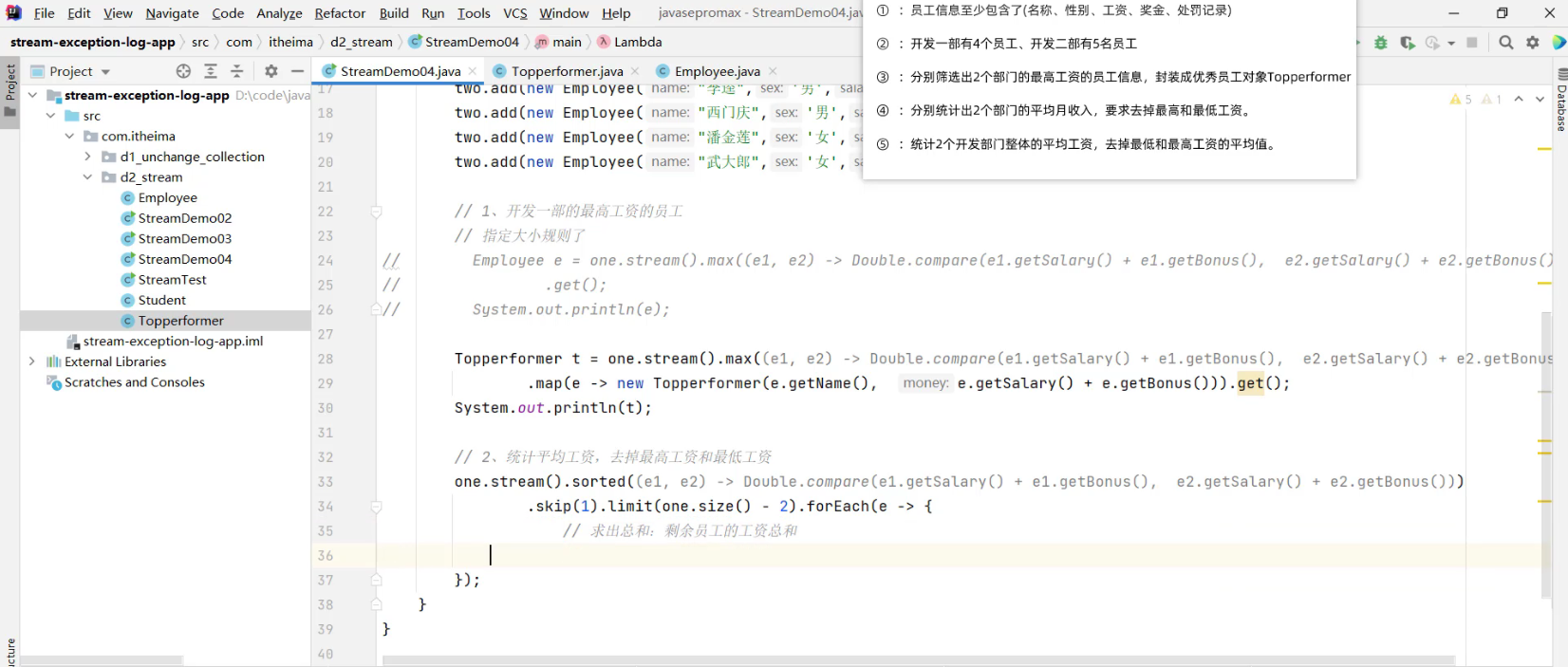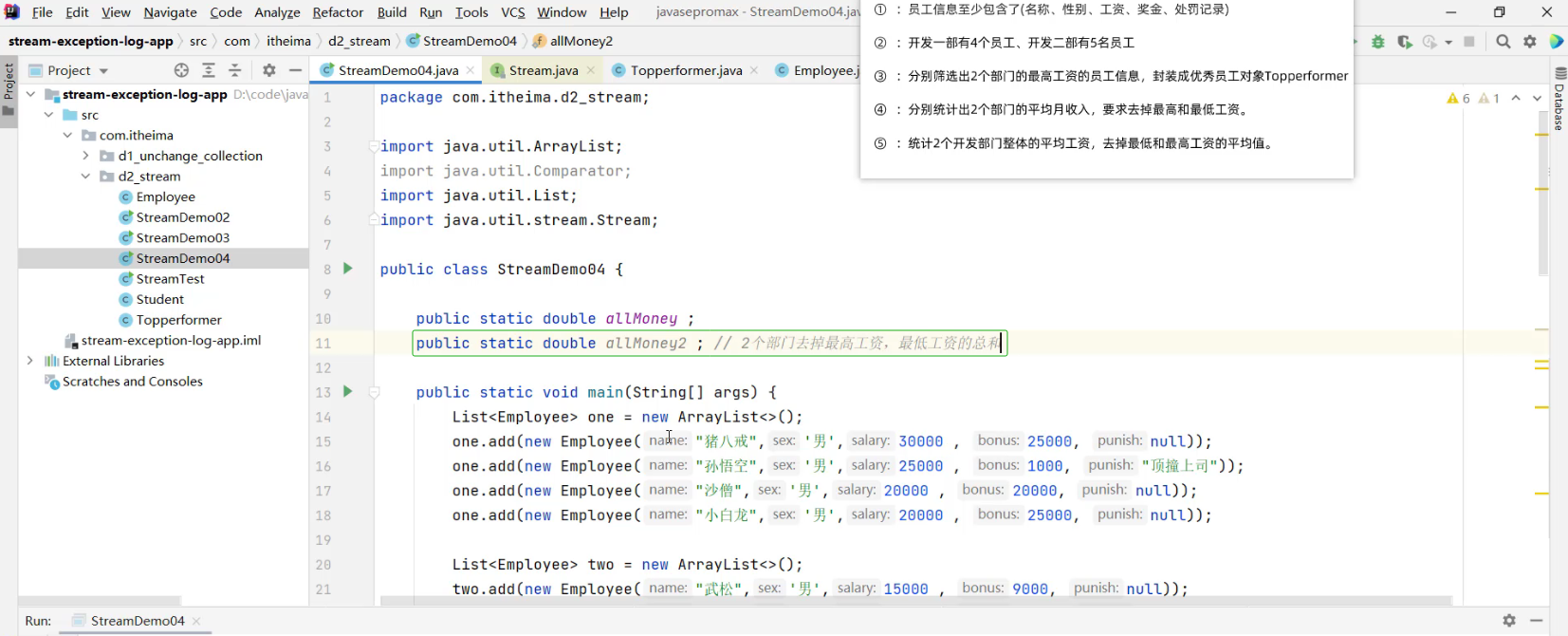 - 2.1 求出剩余员工的工资总和 (详见视频 02、Stream流体系.mp4 00:55:57/01:20:56)
