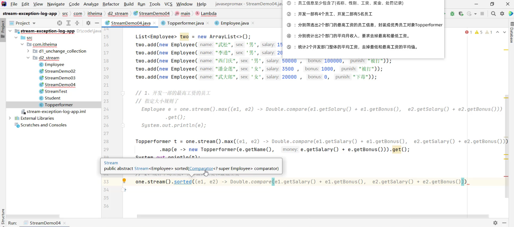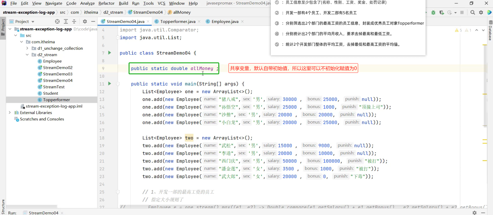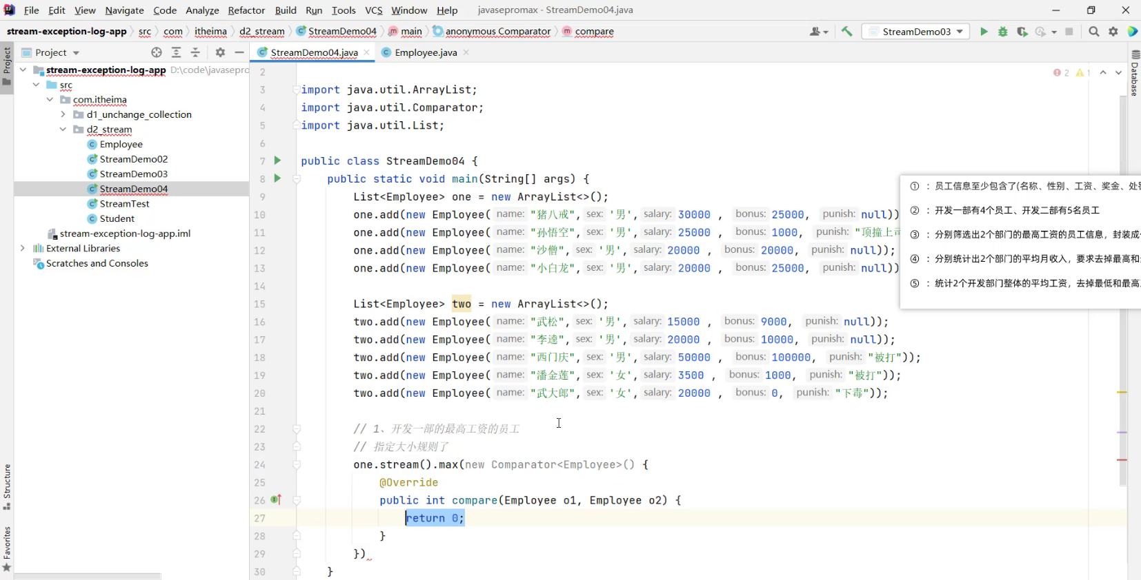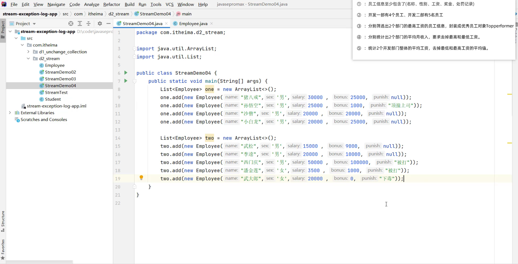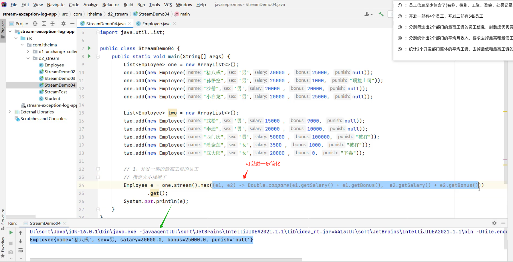 - 2.1 求出剩余员工的工资总和 (详见视频 02、Stream流体系.mp4 00:55:57/01:20:56)