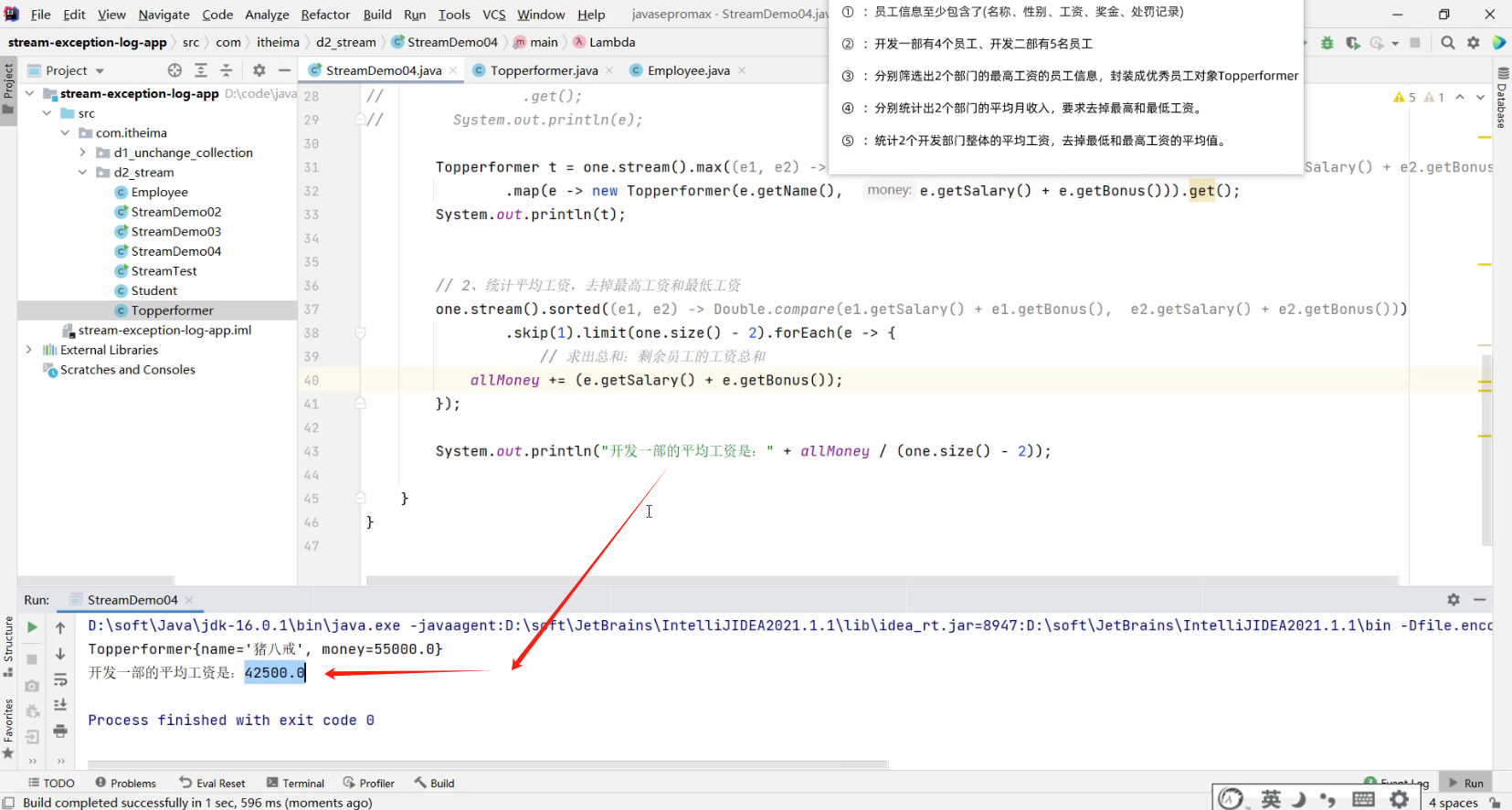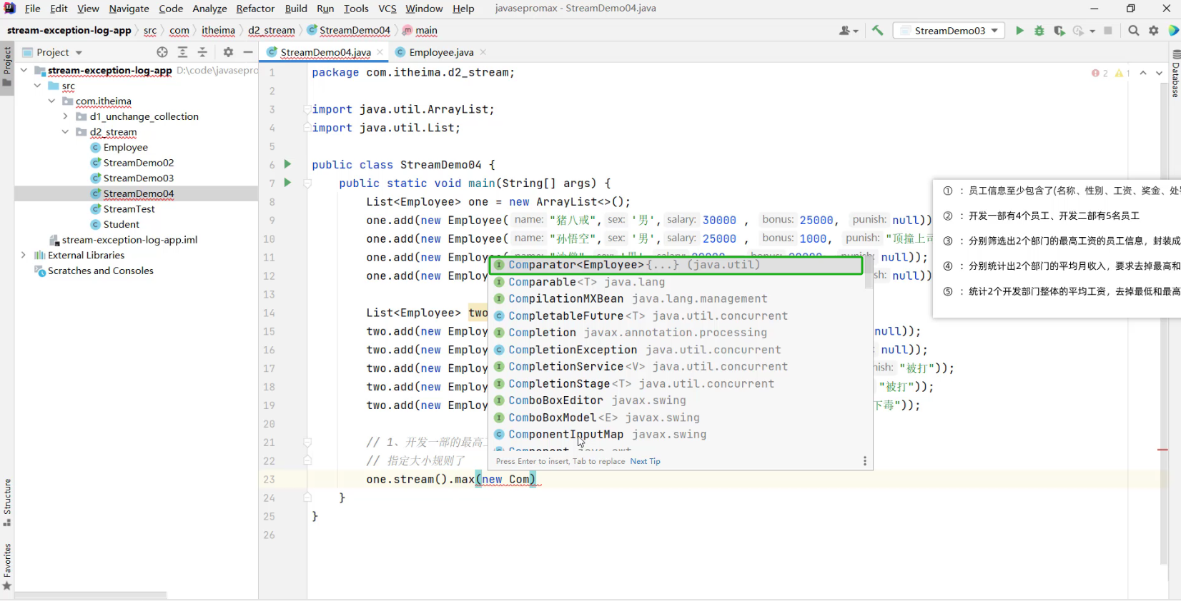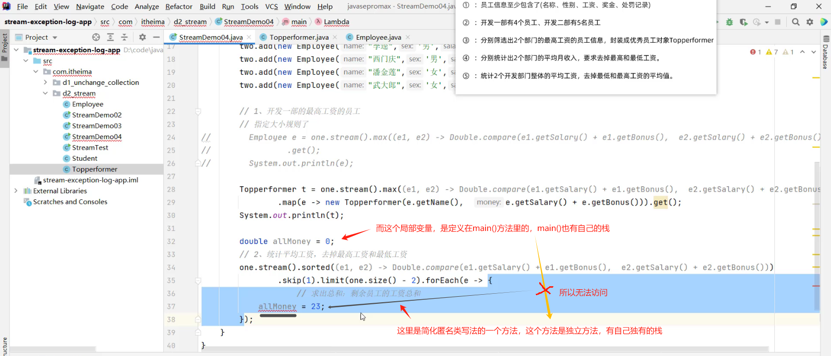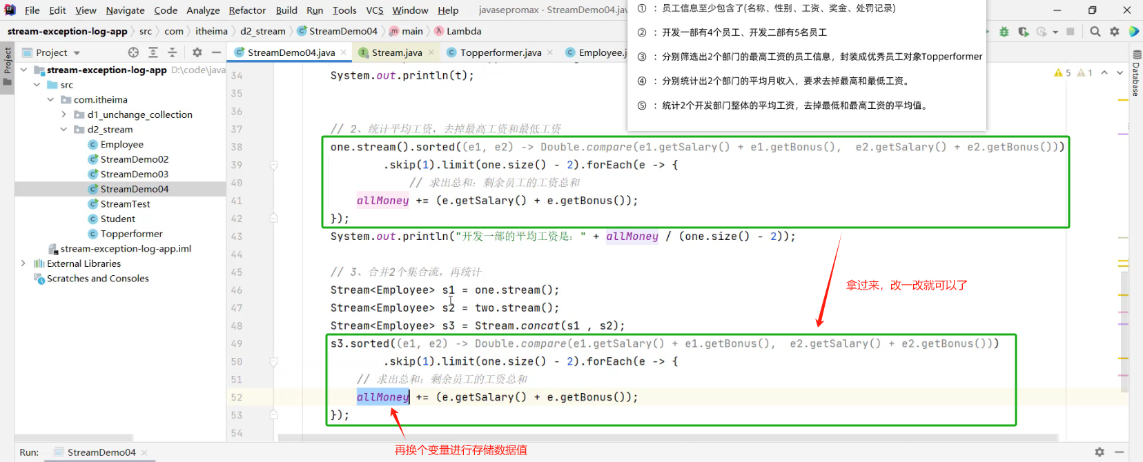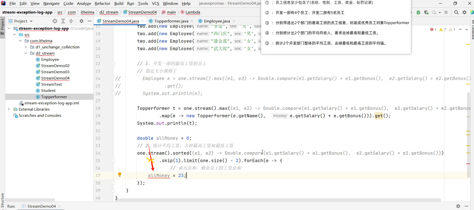 - 2.1 求出剩余员工的工资总和 (详见视频 02、Stream流体系.mp4 00:55:57/01:20:56)