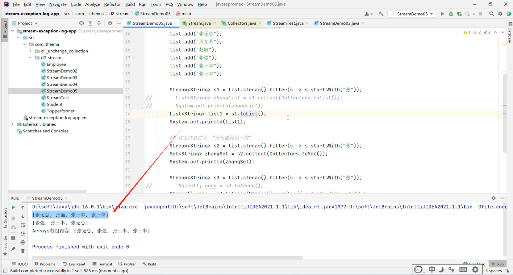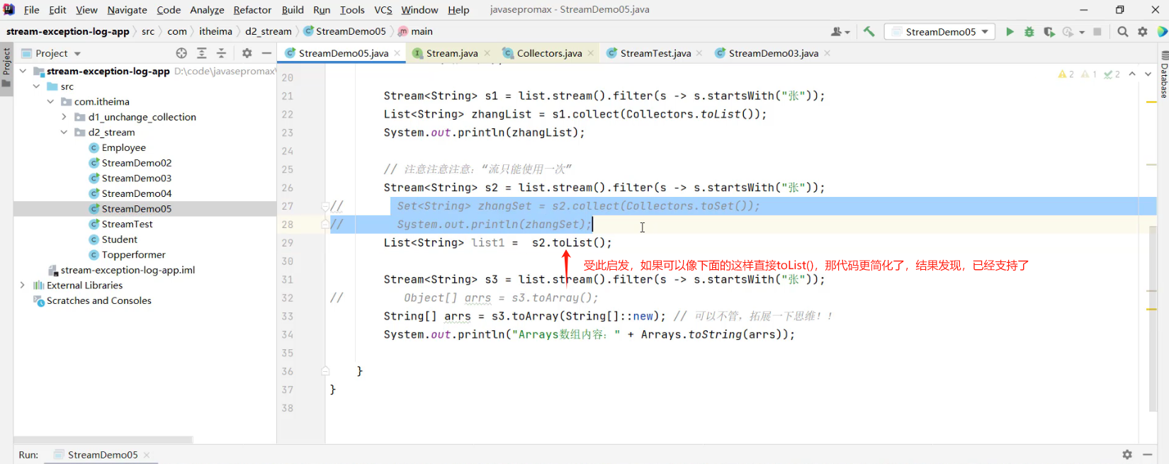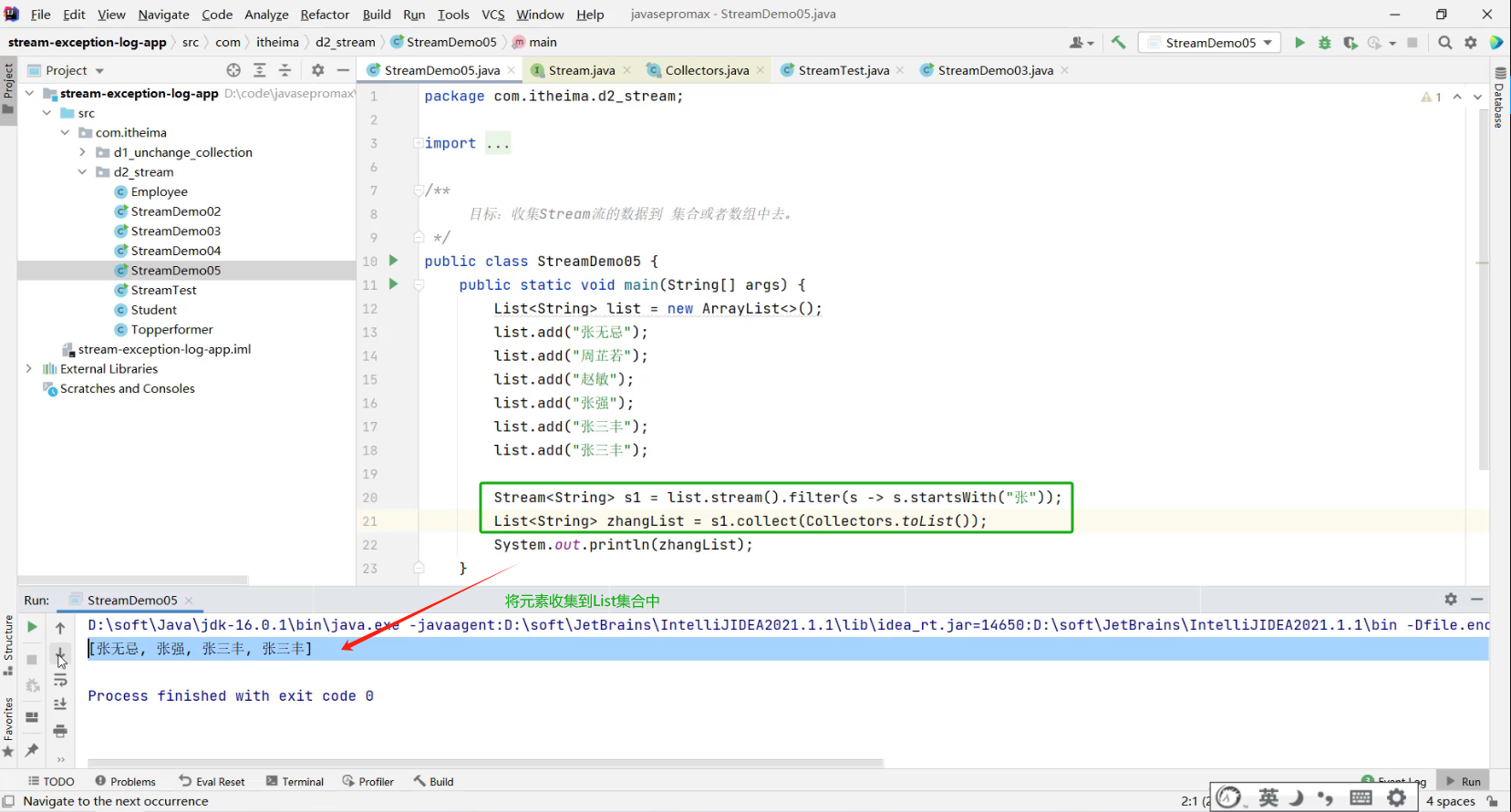- 1.把元素收集到List集合中