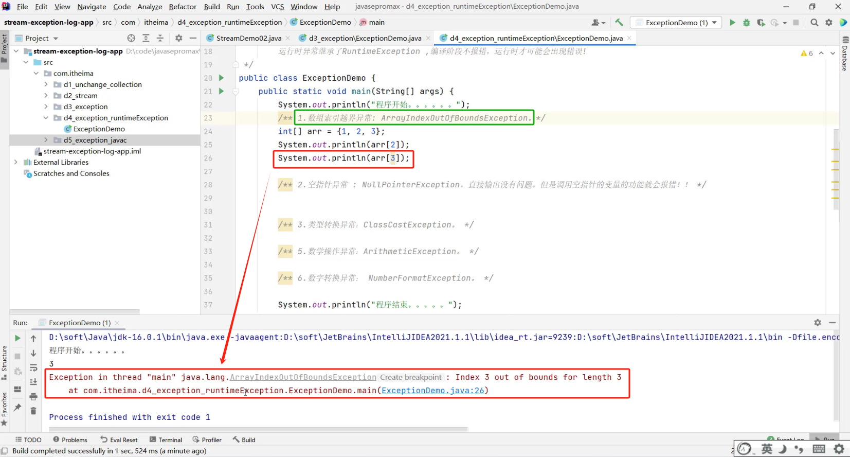 - 1.数组索引越界异常 (ArrayIndexOutOfBoundsException)
