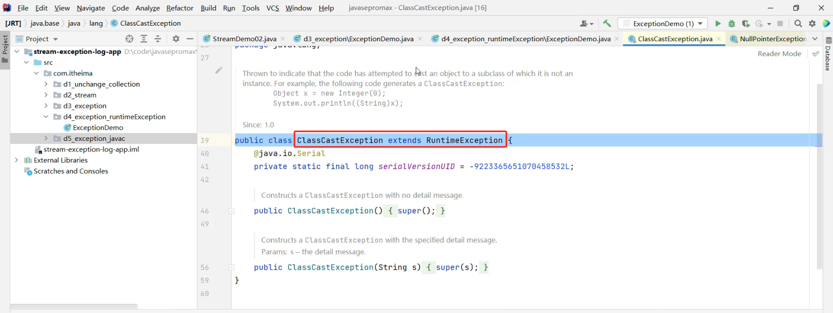 NullPointerException继承自RuntimeException (空指针异常,继承自运行异常,编译阶段不报错,运行时报错)