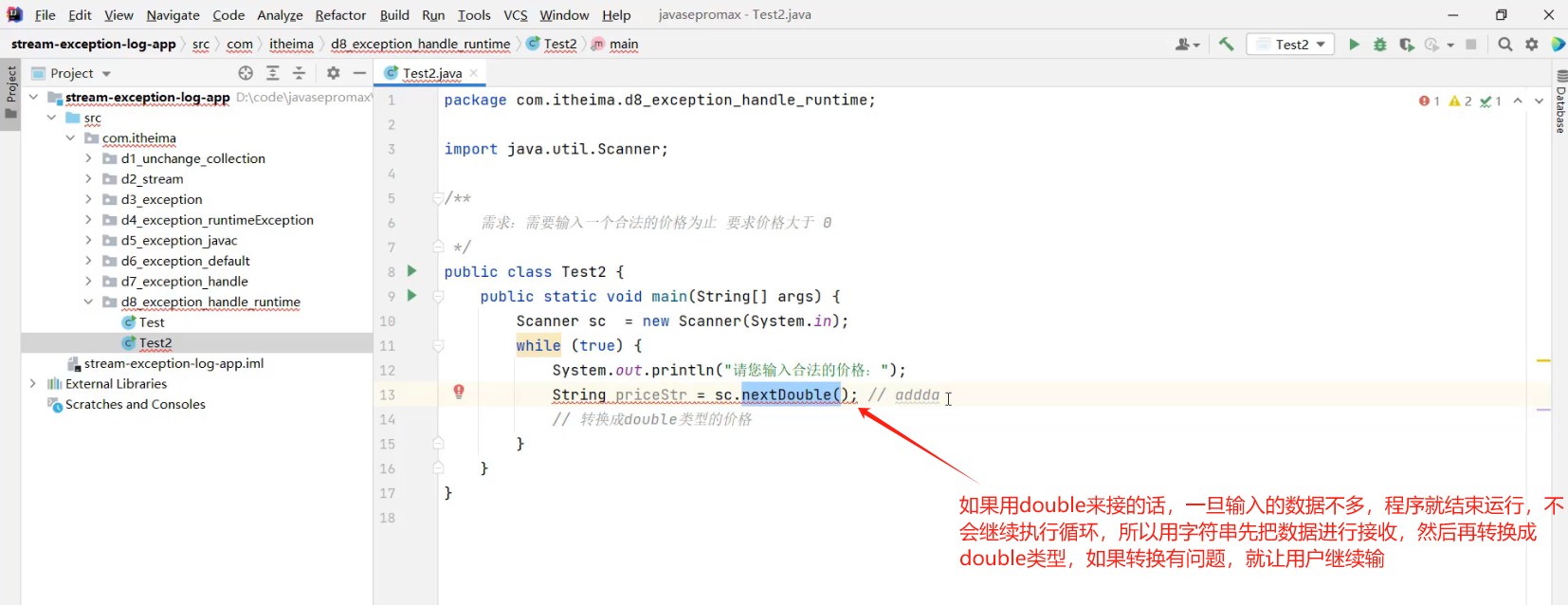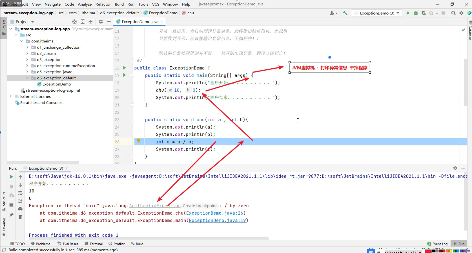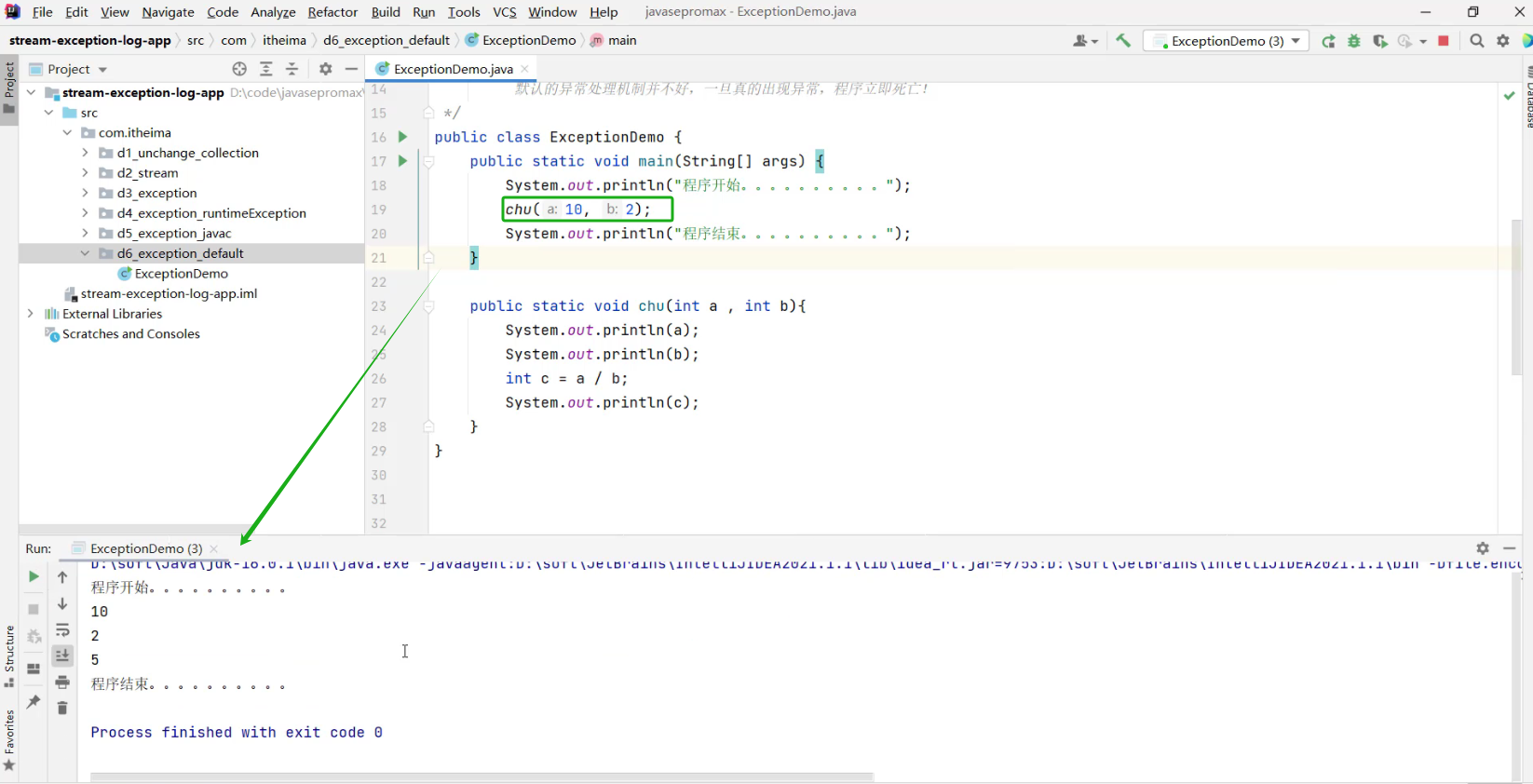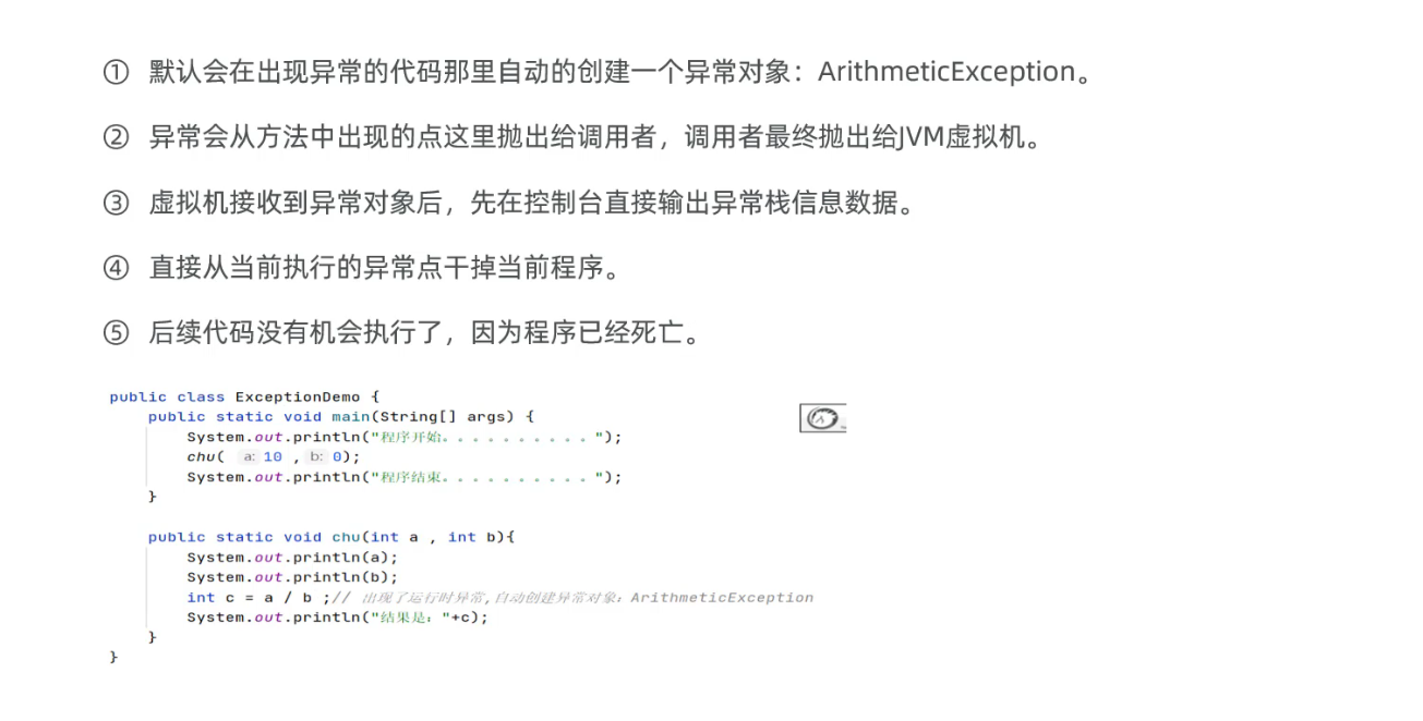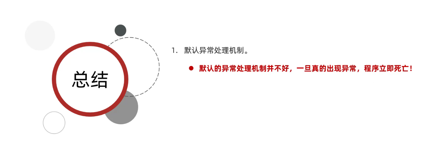 默认的异常处理机制并不好,一旦真的出现异常,程序就会立即死亡!