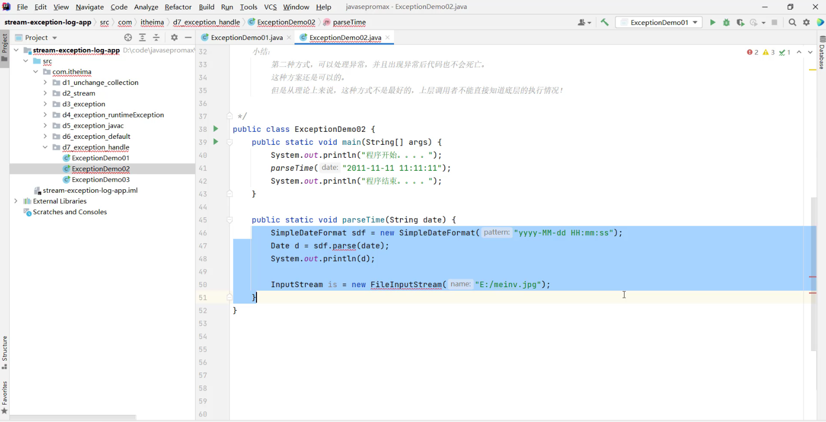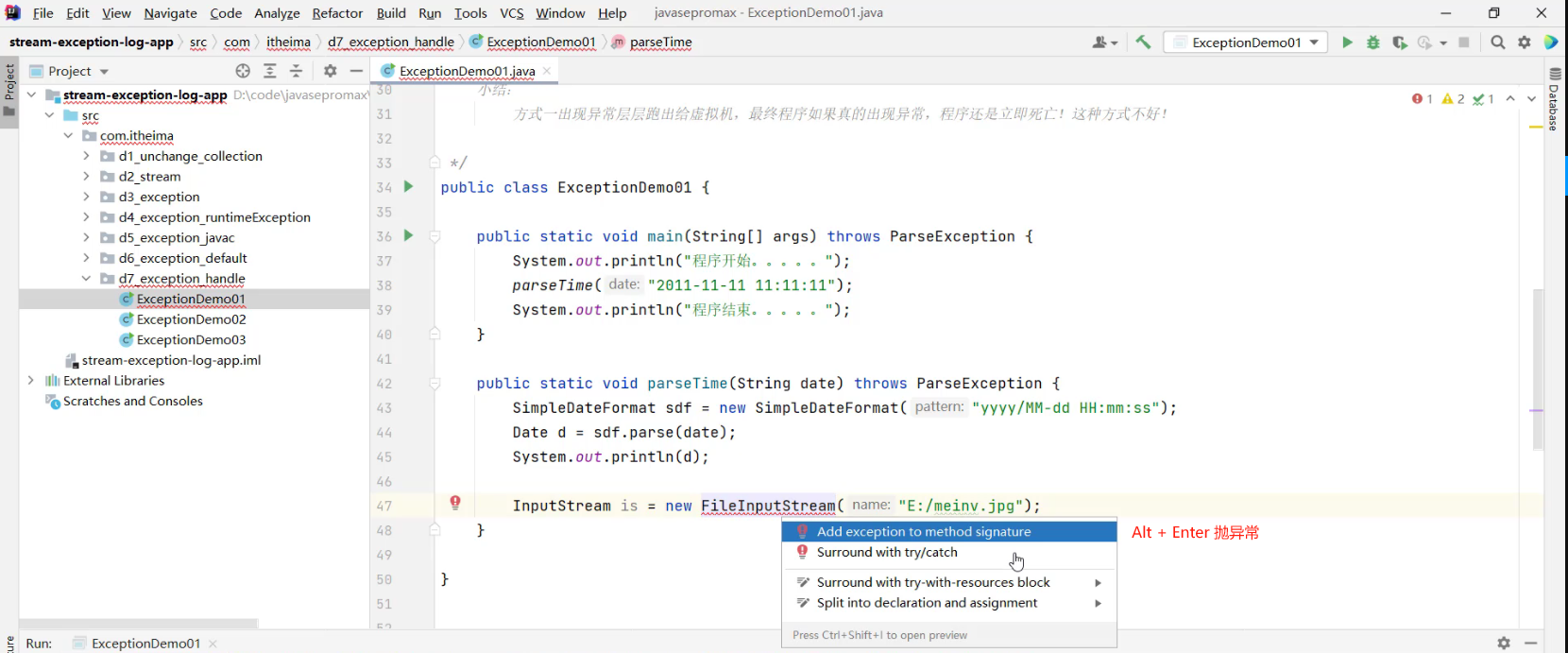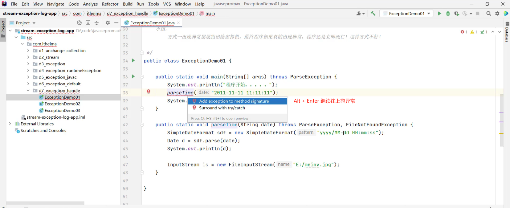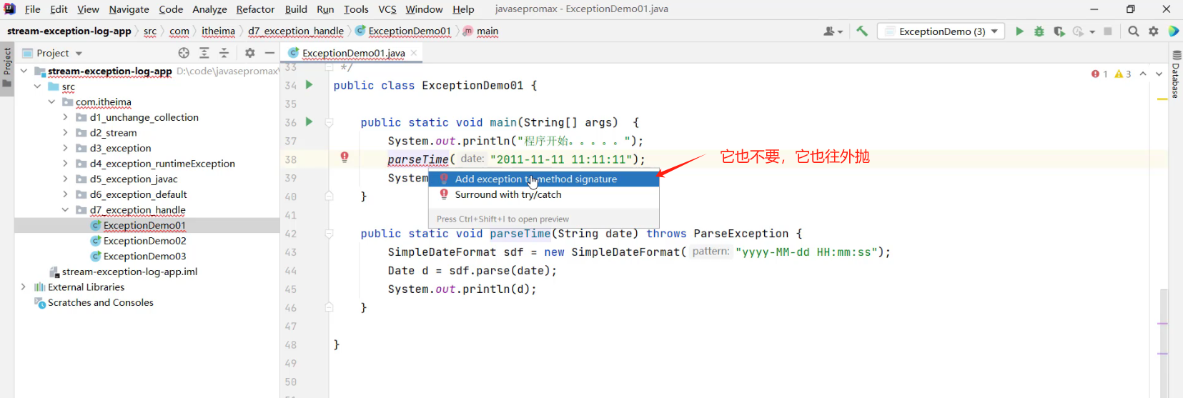 3.5.1 异常处理方式1 -- throws