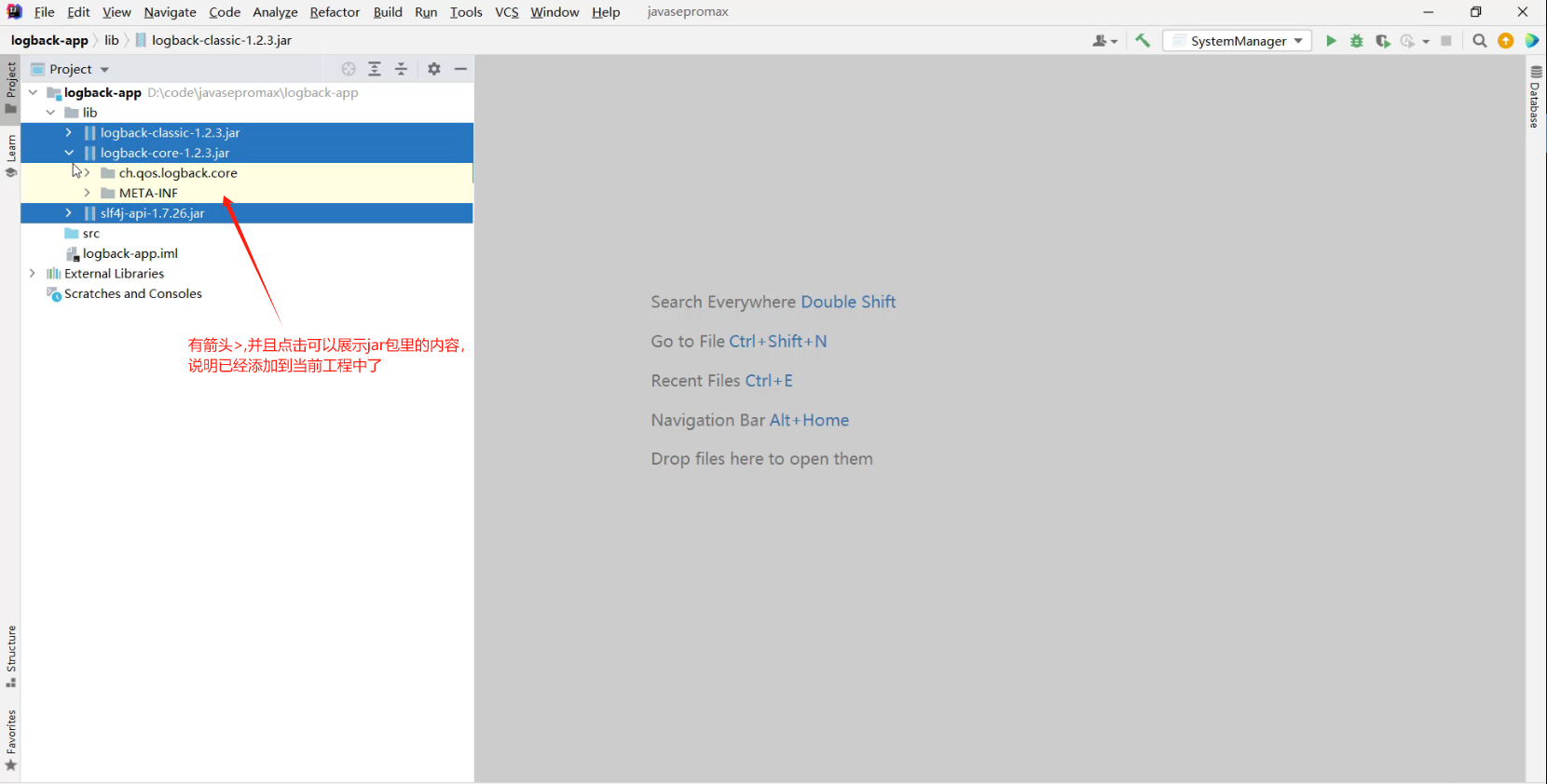 有箭头>,并且点击可以展示jar包里的内容,说明已经添加到当前工程中了