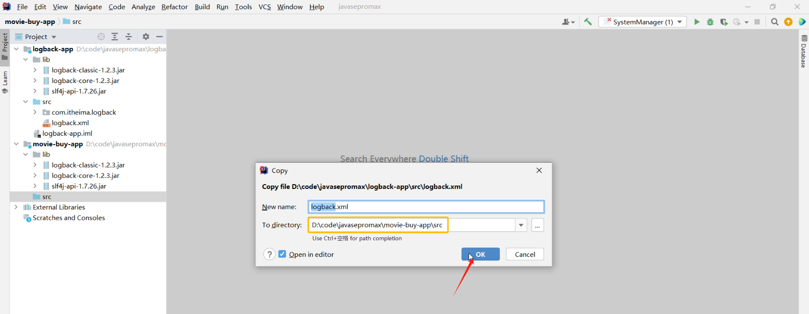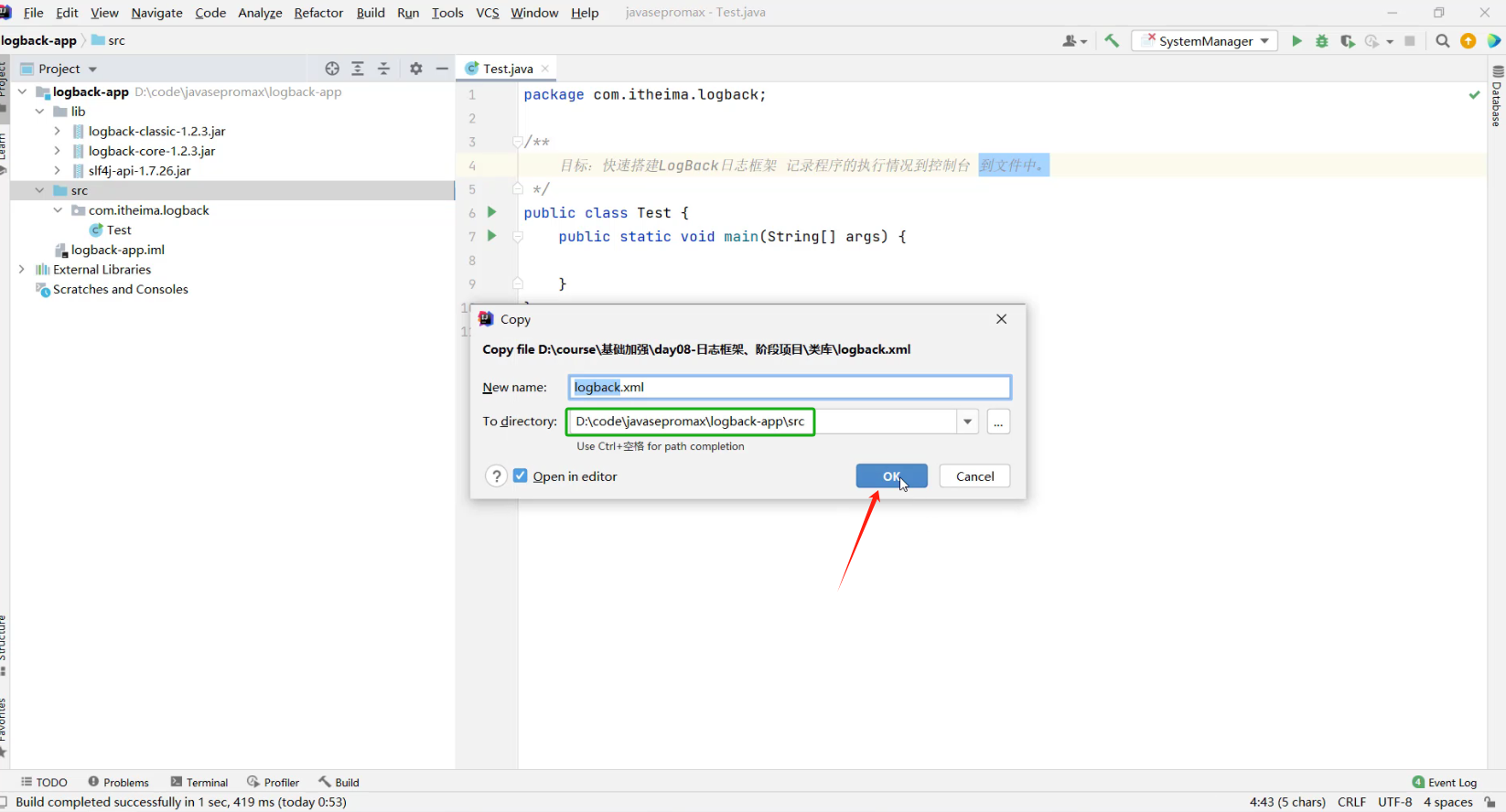 1.4.2 将Logback的核心配置文件logback.xml直接拷贝到src目录下(必须是src下)