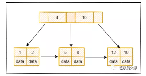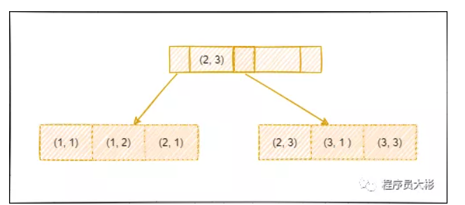 在 B+ 树中,节点中的 key 从左到右递增排列,如果某个指针的左右相邻 key 分别是 keyi 和 keyi+1,则该指针指向所有 key 大于等于 keyi 且小于等于 keyi+1 的节点。
