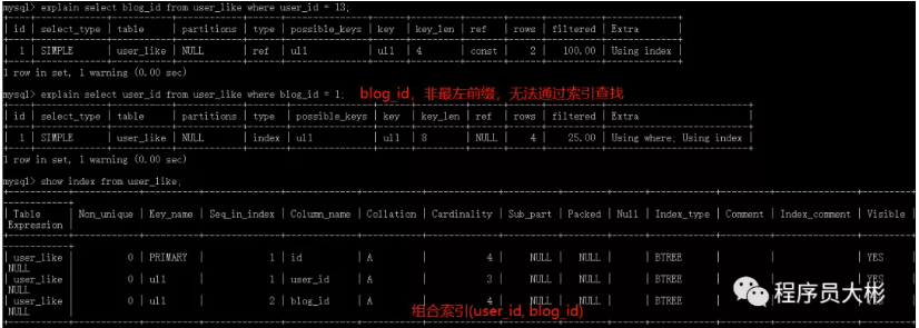 where条件中用不到的字段不适合建立索引- 表记录较少