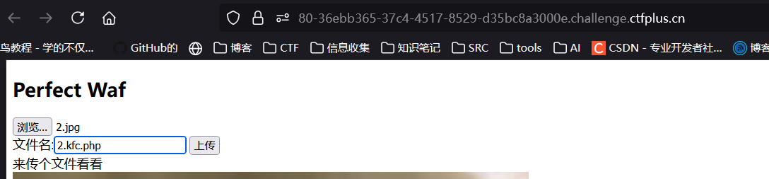 上传图片马,把文件名改成2.kfc.php就可以绕过