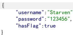 flag?syc={"username":"Starven"&syc="password":"123456"&syc="hasFlag":true}
