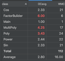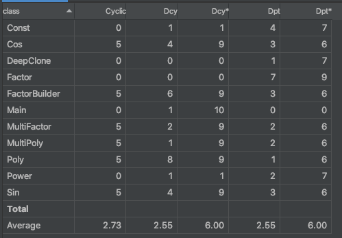 本次作业整体设计复杂度上升极大,与作业难度有很大关系。但可以发现,在拆分出表达式因子类和常数因子类之后,各因子类的复杂度有所下降;相应的用于创建用的FactorBuilder则复杂度上升。Poly和MultiPoly类则由于把正则表达式分割表达式的方法改为了用有限状态机分割字符串的方法,复杂度急剧上升——但其实性能本身应当比正则表达式强。
