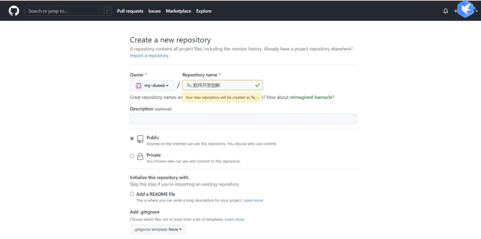 (1)当我们创建一个项目时,可以在Github上建立一个的代码仓库,创建一个README.md文件后,他就生成了一个可设置公开或私有的项目