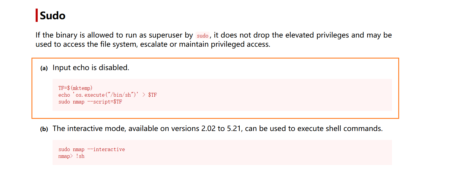 发现可以已root的身份无密码执行nmap,去gtfobins上查利用方案