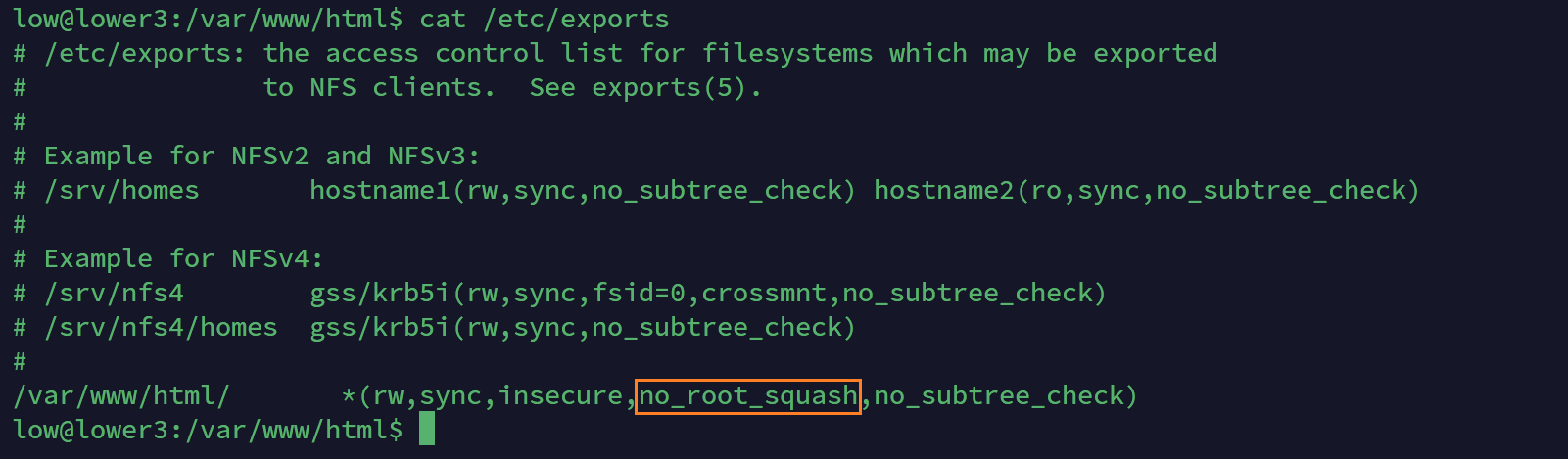 可以看到它启用了no_root_squash选项,这个选项的作用如下: