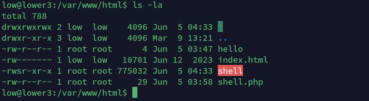 然后通过 chmod u+s shell 的方式给它赋予suid权限