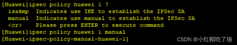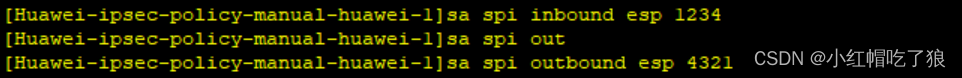 [Huawei-ipsec-policy-manual-huawei-1]sa string-key inbound esp cipher huawei