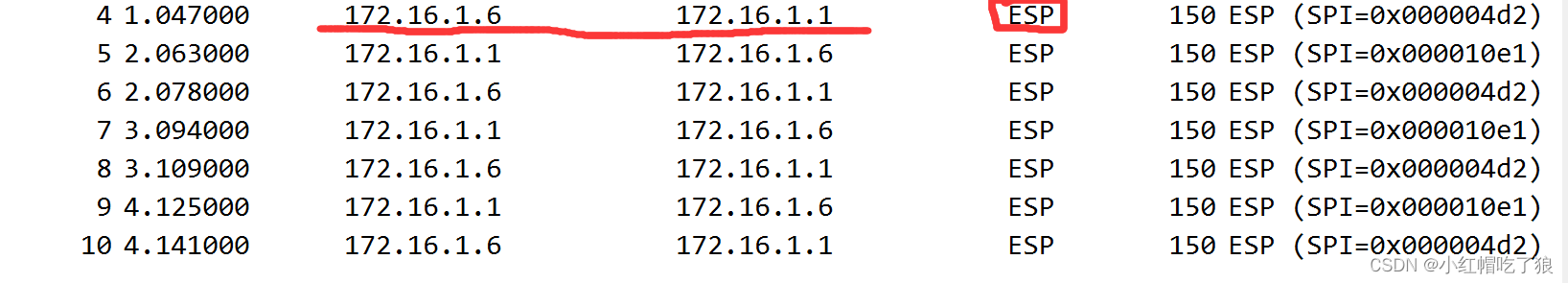 可以看到协议字段是esp说明实验成功,源ip和目的ip都被替换了客户机真实IP地址被隐藏,符合理论知识。