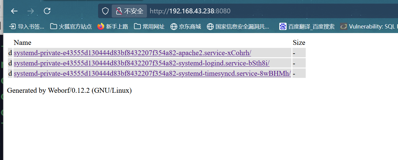 在下面可以看到这个站点是由Weborf实现的,还可以得到它的版本0.12.2,之后我们可以去www.exploit-db.com查一下有没有相关的漏洞,或者直接使用kali中的searchsploit命令,这个命令中的漏洞数据库就是来自exploit-db的