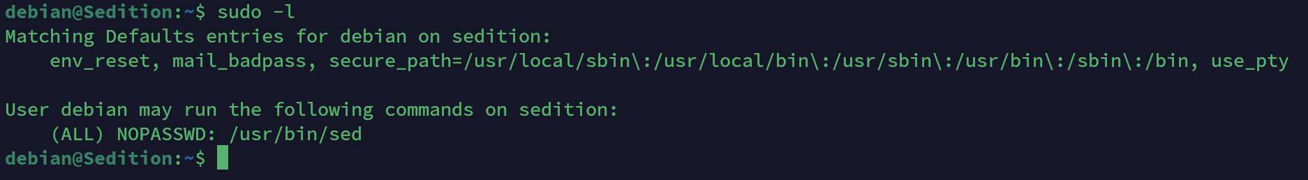 可以通过sed来提权(直接去GTFobins上找利用方案)