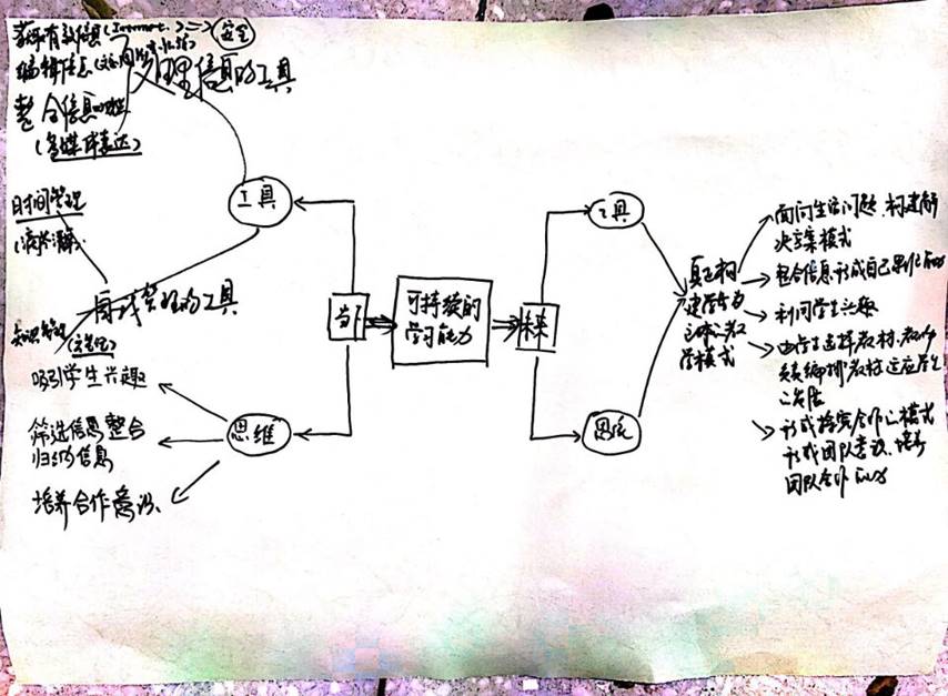 “无组织”,而桌长的催化使得活动“有纪律”,桌长引导过程,鼓励每个人积极参与讨论。在行进过程中记录下有趣的部分。最重要的是领会以图形、标记和言语的方式记录在便签本上的精髓,用于承接和创造问题。“一个人走得快,一群人走得远”,我相信大家一起为同一个目标去奋斗,一定会让信息课堂焕发它的精彩。