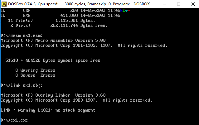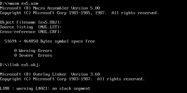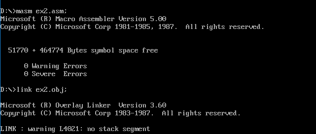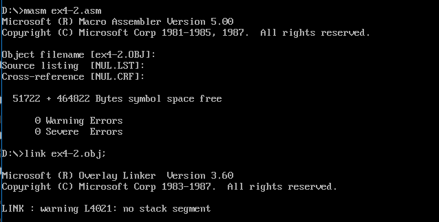2)使用masm、link工具汇编、链接的命令行,如下: