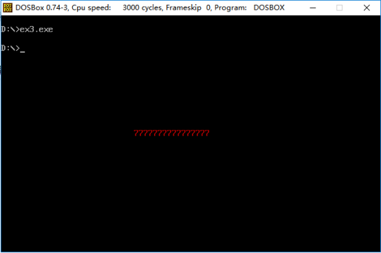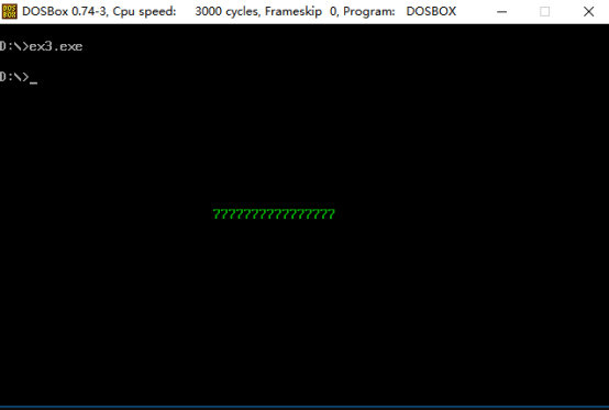 1)在实验一中,通过直接运行ex1.exe时,屏幕上确实可以显示出彩色图标,但是在debug环境下,却没有出现彩色图标。后来进行多次测试,虽然在debug环境下对应的内存单元已经被我修改,但是彩色图标依旧没有显示,我觉得可能是dos系统和正常的操作系统对于屏幕区域显示的处理是有所不同的。