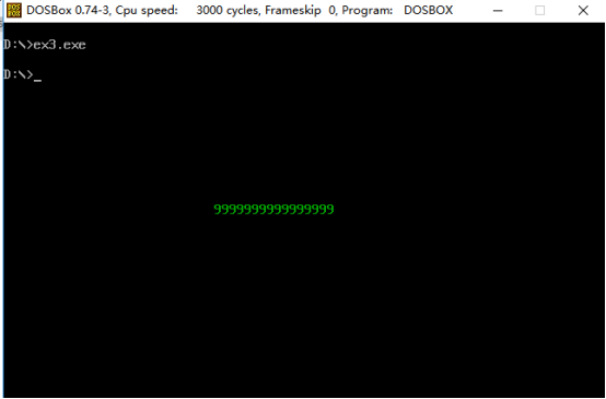 再次保存后,汇编、链接、运行,结果截图如下: