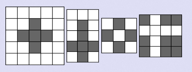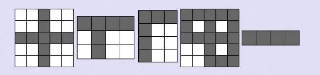 输入一个图,判断其中是否存在十字,十字就是有两条垂直的横着或竖着穿过整个图的线,如下: