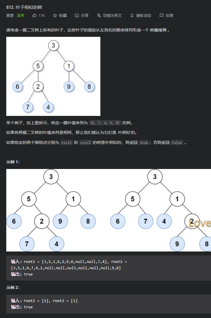 力扣872 叶子相似的树