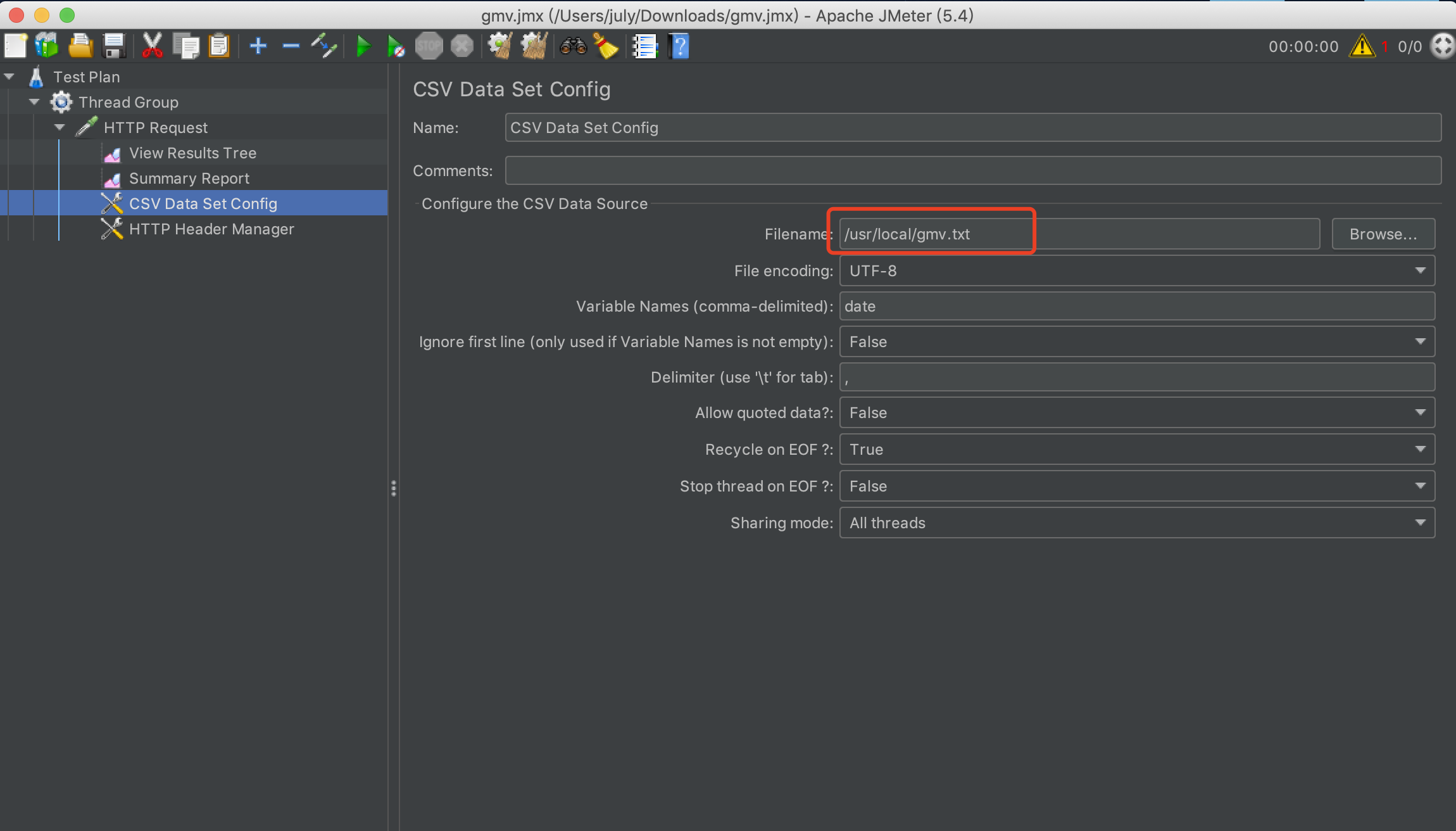 那么从本地的gui,jmeter生成jmx文件时,csv的路径需要写成远程服务器调用的地址,并且把csv文件放到该地址